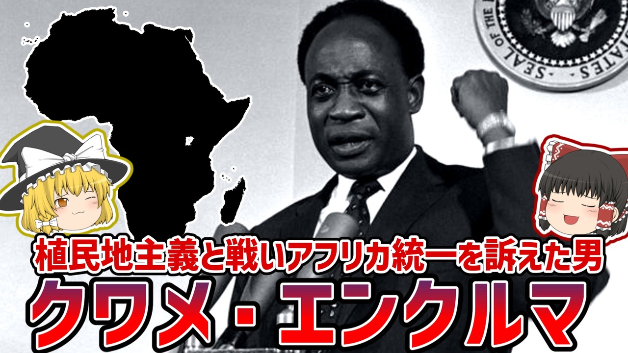 <span style="font-size: 24px;"><strong>植民地主義・帝国主義・資本主義</strong></span><br><span style="font-size: 16px;">この世にはなくなった方が幸せになれるものがたくさんあります。<br>それらを</span><span style="font-size: 16px;"><strong>アフリカ合衆国の力</strong></span><span style="font-size: 16px;">で全て消し去ります</span><br><br>というわけで今回はそんなようなことをマジで言っていた<strong>アフリカ独立運動の父クワメ・エンクルマ</strong>を解説してみました!<br>植民地時代の遺恨を消し去ろうと奮闘するものの、時代に翻弄された男とガーナの歴史です<br><br>◆マイリスト→<a href="https://www.nicovideo.jp/mylist/73354161" target="_blank" rel="noopener nofollow">https://www.nicovideo.jp/mylist/73354161</a><br>◆アフリカの情報を上げてるうぷ主のTwitter→<a href="https://twitter.com/AfrikaanerMaris" target="_blank" rel="noopener nofollow">https://twitter.com/AfrikaanerMaris</a><br><br>いいねくれるとうれしいです<br>いっぱいコメントしてくれるとうぷ主が喜びます。<br>