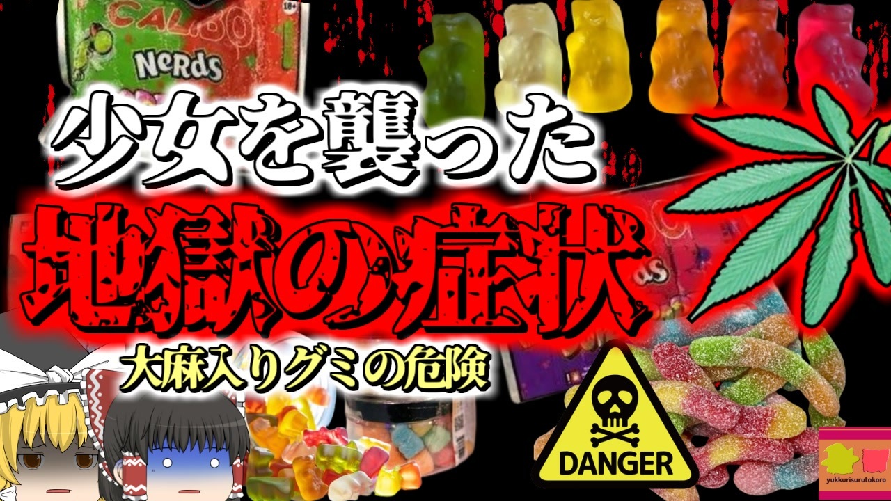 <a href="#" class="seekTime" data-seekTime="00:00" onclick="seekNicoPlayer('#00:00'); return false;">#00:00</a> 冒頭挨拶<br><a href="#" class="seekTime" data-seekTime="00:27" onclick="seekNicoPlayer('#00:27'); return false;">#00:27</a> 食中毒とは<br><a href="#" class="seekTime" data-seekTime="00:58" onclick="seekNicoPlayer('#00:58'); return false;">#00:58</a> 視聴上の注意<br><a href="#" class="seekTime" data-seekTime="2:14" onclick="seekNicoPlayer('#2:14'); return false;">#2:14</a> 本編開始<br><a href="#" class="seekTime" data-seekTime="2:39" onclick="seekNicoPlayer('#2:39'); return false;">#2:39</a> 二人の少女<br><a href="#" class="seekTime" data-seekTime="3:33" onclick="seekNicoPlayer('#3:33'); return false;">#3:33</a> 食べた物が原因?<br><a href="#" class="seekTime" data-seekTime="4:05" onclick="seekNicoPlayer('#4:05'); return false;">#4:05</a> "大麻草"<br><a href="#" class="seekTime" data-seekTime="4:57" onclick="seekNicoPlayer('#4:57'); return false;">#4:57</a> 怪しいグミ<br><a href="#" class="seekTime" data-seekTime="6:02" onclick="seekNicoPlayer('#6:02'); return false;">#6:02</a> 大麻いりお菓子が蔓延していた<br><a href="#" class="seekTime" data-seekTime="6:52" onclick="seekNicoPlayer('#6:52'); return false;">#6:52</a> 販売者を逮捕<br><a href="#" class="seekTime" data-seekTime="8:48" onclick="seekNicoPlayer('#8:48'); return false;">#8:48</a> 背景<br><a href="#" class="seekTime" data-seekTime="9:51" onclick="seekNicoPlayer('#9:51'); return false;">#9:51</a> 日本にもあったが規制が行われた<br><br>今回紹介するのは、以前リクエストがありました、とある食中毒に関する事例です。<br>イングランド某所にある、総合病院にはこの日、二人の少女が緊急搬送されてきました。<br>彼女たちは、市内に暮らす16歳のAさん、8歳のBさんの姉妹で、レスキュー隊の話によれば、夕食後に突然頭痛、吐き気、痙攣などといった症状を発症し、両親によって通報が行われ、この病院に運ばれてきた、ということでした。<br>医師はすぐに二人の診察、処置を行い、検査を実施しつつ、到着した両親からも話を聞くことに。<br>医師は彼女たちの症状から、何らかのアレルギー性ショックの疑いがあると考え、両親からこの日食べた物、触れたものなどを聞き取り、検査結果と照らし合わせましたが、二人にはこれといった食物アレルギーなどはなく、原因は不明。<br>しかし、特に症状がひどかった、Bさんの検査結果から、医師はその原因に思い当たります。<br>実はこの姉妹は、近頃SNSなどで話題となっていた、"あるお菓子"を夕食までに喫食しており、それに含まれる成分によって、このような症状に襲われていたのです。<br><br><br />※この動画は過去の事件を知り、現在でも同じことが発生する危険性を再認識、関与しないように促すための動画であり、視聴者を扇動、動揺を誘うためのコンテンツではありません。<br><br>ご要望にお応えして、メンバーシップの開設を行いました。<br>下記URLからも登録可能ですので、ご興味がある方は是非ご参加ください。<br><a href="https://www.youtube.com/channel/UCcT5a1J7XJW7CLYI2RKl4pw/join" target="_blank" rel="noopener nofollow">https://www.youtube.com/channel/UCcT5a1J7XJW7CLYI2RKl4pw/join</a><br><br><br>Twitter<br>→<a href="https://twitter.com/yukkurisurutoko" target="_blank" rel="noopener nofollow">https://twitter.com/yukkurisurutoko</a><br><br>取り急ぎ、簡易的にですがマイリストを作りました。<br>【ゆっくり解説】事故・事件関係紹介リスト <br><a href="https://www.nicovideo.jp/mylist/71034319" target="_blank" rel="noopener nofollow">https://www.nicovideo.jp/mylist/71034319</a><br>【ゆっくり解説】放射線系事故<br><a href="https://www.nicovideo.jp/mylist/71034368" target="_blank" rel="noopener nofollow">https://www.nicovideo.jp/mylist/71034368</a><br>【ゆっくり解説】鉄道系事故・事件関連<br><a href="https://www.nicovideo.jp/mylist/71034379" target="_blank" rel="noopener nofollow">https://www.nicovideo.jp/mylist/71034379</a>