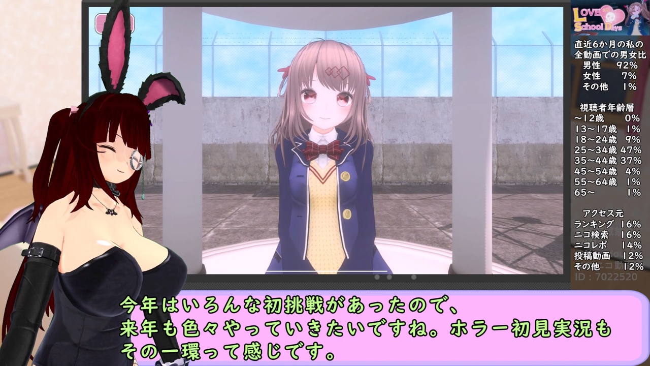 今年も1年間本当にありがとうございました!また来年もよろしくお願いします! <br><br>RTAマイリス→<a href="https://www.nicovideo.jp/mylist/69428960" target="_blank" rel="noopener">mylist/69428960</a><br>非RTAマイリス→<a href="https://www.nicovideo.jp/mylist/73122841" target="_blank" rel="noopener">mylist/73122841</a><br>投稿動画一覧→<a href="https://www.nicovideo.jp/user/7022520/video" target="_blank" rel="noopener nofollow">https://www.nicovideo.jp/user/7022520/video</a><br><br>頂いたファンアート<br><a href="https://twitter.com/kafukubu_suki_1/status/1739681302197248418" target="_blank" rel="noopener nofollow">https://twitter.com/kafukubu_suki_1/status/1739681302197248418</a><br><br>ラブラブスクールデイズSteamのURL<br><a href="https://store.steampowered.com/app/1305300/" target="_blank" rel="noopener nofollow">https://store.steampowered.com/app/1305300/</a><br><br>カスタムオーダーメイド3D2(COM3D2)及び<br>バーチャルアバタースタジオを使用しています。