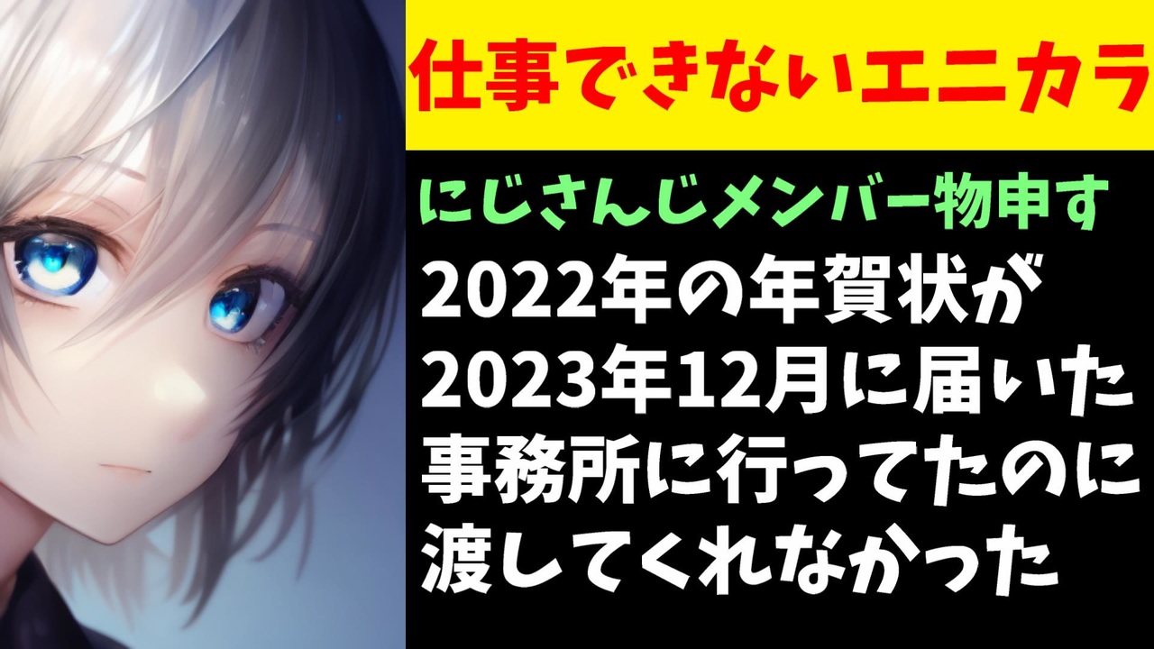 2023年12月29日、にじさんじ所属の犬、黒井しばさんがファンが去年出してくれた年賀状が今届いたとして運営に物申し話題になっています。<br><br>引用<br>【雑】酒もって集合!忘年会すっぞ!【にじさんじ/黒井しば】<br><a href="https://www.youtube.com/live/uWruID6HcQA?si=JHwCRb3i1qy1jykp" target="_blank" rel="noopener nofollow">https://www.youtube.com/live/uWruID6HcQA?si=JHwCRb3i1qy1jykp</a><br><br>Youtube <a href="https://www.youtube.com/@V_Virgin_Mary" target="_blank" rel="noopener nofollow">https://www.youtube.com/@V_Virgin_Mary</a><br>twitter <a href="https://twitter.com/V_Virgin_Mary" target="_blank" rel="noopener nofollow">https://twitter.com/V_Virgin_Mary</a><br><br>使用素材<br>高品質なフリー動画素材 - Pixabay <a href="https://pixabay.com/ja/videos" target="_blank" rel="noopener nofollow">https://pixabay.com/ja/videos</a>