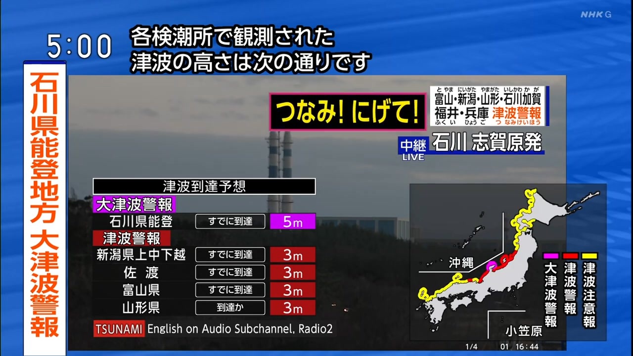 令和6年能登半島地震(最大震度7) 2024年1月1日(月祝) ①16:06~17:00 M7.6 緊急地震速報 大津波警報