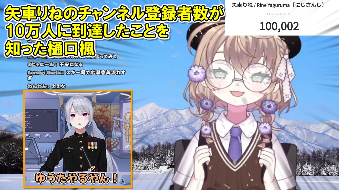 矢車10万人達成おめでとう!<br>なかなか特殊な到達の仕方だったな<br><br>本家参考動画<br>・矢車りね<br>【雑談】10万人行くまで年を越せない耐久【にじさんじ/矢車りね】<br><a href="https://youtu.be/8T0ckiYjBCs" target="_blank" rel="noopener nofollow">https://youtu.be/8T0ckiYjBCs</a><br>・樋口楓<br>【雑談】2023年に感謝!みんなで年越しそば食べよ□【にじさんじ / 樋口楓 / お雑談をいたします!44】<br><a href="https://youtu.be/SZV6j4ZXiqI" target="_blank" rel="noopener nofollow">https://youtu.be/SZV6j4ZXiqI</a><br><br>参考元チャンネル&X(Twitter)<br>・矢車りね<br><a href="https://www.youtube.com/@YagurumaRine" target="_blank" rel="noopener nofollow">https://www.youtube.com/@YagurumaRine</a><br><a href="https://twitter.com/Rine_Yaguruma" target="_blank" rel="noopener nofollow">https://twitter.com/Rine_Yaguruma</a><br>・樋口楓<br><a href="https://www.youtube.com/@HiguchiKaede" target="_blank" rel="noopener nofollow">https://www.youtube.com/@HiguchiKaede</a><br><a href="https://twitter.com/Higuchikaede" target="_blank" rel="noopener nofollow">https://twitter.com/Higuchikaede</a><br><br>ニコニコのダイコンマンリスト<br>「バーチャルYouTuberシリーズ」↓<br><a href="https://www.nicovideo.jp/mylist/62551838" target="_blank" rel="noopener">mylist/62551838</a><br>「バーチャルYouTuberシリーズ2」↓<br><a href="https://www.nicovideo.jp/mylist/67858437" target="_blank" rel="noopener">mylist/67858437</a><br>「バーチャルYouTuberシリーズ3」↓<br><a href="https://www.nicovideo.jp/mylist/71340675" target="_blank" rel="noopener">mylist/71340675</a><br>「バーチャルYouTuberシリーズ4」↓<br><a href="https://www.nicovideo.jp/mylist/73995264" target="_blank" rel="noopener">mylist/73995264</a><br><br>ダイコンマンのTwitter<br><a href="https://twitter.com/Daikon_Man_V" target="_blank" rel="noopener nofollow">https://twitter.com/Daikon_Man_V</a>