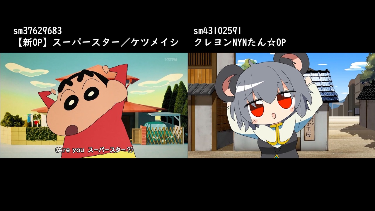 誰かが作ってくれると思ってたけど三が日過ぎても来なかったので初投稿です<br><br>左:<a href="https://www.nicovideo.jp/watch/sm37629683" class="watch">sm37629683</a><br>右:<a href="https://www.nicovideo.jp/watch/sm43102591" class="watch">sm43102591</a><br><br><a target="_blank" href="https://qa.nicovideo.jp/faq/show/19424?site_domain=default" style="font-size: 13px;color: #657586; text-decoration: underline; line-height: 1.4">この動画は投稿者によって修正されました</a>