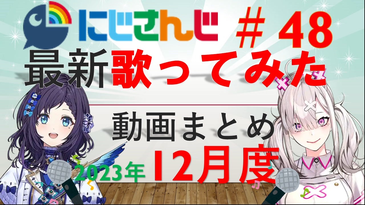 <span style="color: #00ff00;">◆</span>期間:2023年12月1日~12月31日<br><span style="color: #00ff00;">◆</span>対象:にじさんじライバーによる歌ってみた動画<br><span style="font-size: 10px;">(にじさんじのみ対象。JP・元ID・元KR・EN)</span><br><span style="color: #00ff00;">◆</span><span style="color: #262626;">参考サイト:(</span><span style="color: #262626;"><strong>↓元動画はこのページからご参照ください↓</strong></span><span style="color: #262626;">)</span><br>VMusic Ch. 様<br><a href="https://music.vtuber-ch.com/?gname=にじさんじALL" target="_blank" rel="noopener nofollow">https://music.vtuber-ch.com/?gname=にじさんじALL</a><br>にじさんじ非公式Wiki 様<br><a href="https://wikiwiki.jp/nijisanji/歌唱まとめ" target="_blank" rel="noopener nofollow">https://wikiwiki.jp/nijisanji/歌唱まとめ</a><br><br>前回(11月)の歌みたまとめ:<a href="https://www.nicovideo.jp/watch/sm43103819" class="watch">sm43103819</a><br>年間歌ってみたまとめ:多分作る(1月くらい)<br><br>プレイリストは上記非公式Wiki内のプレイリストをご活用ください。<br>気になる歌動画を見つけたらぜひ、元動画をご覧ください!!<br><br>よく確認はしましたが、抜けがありましたらコメントをお願いいたします。<br><br>久しぶりの総動画時間30分超えで投稿が遅くなりました…