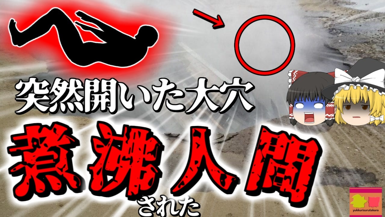 <a href="#" class="seekTime" data-seekTime="00:00" onclick="seekNicoPlayer('#00:00'); return false;">#00:00</a> 冒頭挨拶<br><a href="#" class="seekTime" data-seekTime="00:41" onclick="seekNicoPlayer('#00:41'); return false;">#00:41</a> 視聴上の注意<br><a href="#" class="seekTime" data-seekTime="1:07" onclick="seekNicoPlayer('#1:07'); return false;">#1:07</a> 本編開始<br><a href="#" class="seekTime" data-seekTime="1:39" onclick="seekNicoPlayer('#1:39'); return false;">#1:39</a> 道路に開いた大穴<br><a href="#" class="seekTime" data-seekTime="2:18" onclick="seekNicoPlayer('#2:18'); return false;">#2:18</a> 地下の給湯パイプ<br><a href="#" class="seekTime" data-seekTime="4:22" onclick="seekNicoPlayer('#4:22'); return false;">#4:22</a> 熱湯に浸かった二人<br><a href="#" class="seekTime" data-seekTime="5:26" onclick="seekNicoPlayer('#5:26'); return false;">#5:26</a> 陥没する原因<br><a href="#" class="seekTime" data-seekTime="6:49" onclick="seekNicoPlayer('#6:49'); return false;">#6:49</a> 日本でも深刻な問題に<br><br><br>今回紹介するのは、ロシアで発生した道路陥没事故の一例です。<br>ロシア某所の街の警察署にこの日の昼、「道路に突然大穴が開いて、車が飲み込まれた」との通報が入りました。<br>警察、レスキュー隊は直ちに現場に急行。<br>現場となった道路は、市街地の広い整備された道路で、その中心部には、直径10メートル近い巨大な穴、そして中から立ち込める、大量の湯気、逆さまの状態で故障する乗用車が発見されました。<br>地下に埋設されていた、暖房用の給湯パイプが破断し、大量の熱湯が穴の中にあふれ、内部は高温のお湯だまりになっており、転落した自動車はその中に浸かっているような状況でした。<br>レスキュー隊は、クレーン車を用いて中の車を移動させ、被災者の救出を行いましたが、乗用車に乗っていたと思われる二名の男性は、吹き出る熱湯に少なくとも30分以上は漬かっていたためか、全身熱傷によってすでに絶命しており・・・<br><br><br />※この動画は過去の事件を知り、現在でも同じことが発生する危険性を再認識、関与しないように促すための動画であり、視聴者を扇動、動揺を誘うためのコンテンツではありません。<br><br>ご要望にお応えして、メンバーシップの開設を行いました。<br>下記URLからも登録可能ですので、ご興味がある方は是非ご参加ください。<br><a href="https://www.youtube.com/channel/UCcT5a1J7XJW7CLYI2RKl4pw/join" target="_blank" rel="noopener nofollow">https://www.youtube.com/channel/UCcT5a1J7XJW7CLYI2RKl4pw/join</a><br><br><br>Twitter<br>→<a href="https://twitter.com/yukkurisurutoko" target="_blank" rel="noopener nofollow">https://twitter.com/yukkurisurutoko</a><br><br>取り急ぎ、簡易的にですがマイリストを作りました。<br>【ゆっくり解説】事故・事件関係紹介リスト <br><a href="https://www.nicovideo.jp/mylist/71034319" target="_blank" rel="noopener nofollow">https://www.nicovideo.jp/mylist/71034319</a><br>【ゆっくり解説】放射線系事故<br><a href="https://www.nicovideo.jp/mylist/71034368" target="_blank" rel="noopener nofollow">https://www.nicovideo.jp/mylist/71034368</a><br>【ゆっくり解説】鉄道系事故・事件関連<br><a href="https://www.nicovideo.jp/mylist/71034379" target="_blank" rel="noopener nofollow">https://www.nicovideo.jp/mylist/71034379</a>