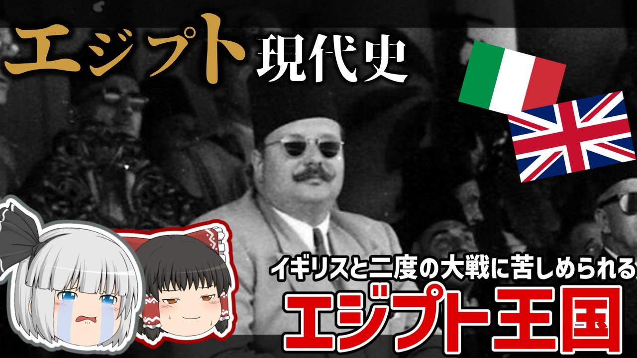 <span style="font-size: 16px;"><strong>今回はエジプト歴史解説シリーズ第4弾</strong></span><br><span style="font-size: 16px;">二度の世界大戦とイギリスの多大な影響力に苦しめられる<br>エジプトについて解説しました。</span><br>何とか独立できても付き纏うイギリスの影響力、ほんま覇権国だったんだなぁと<br>ひしひしと感じることが出来ます。<br><br>第1回 トルコ系軍人マムルークとオスマン帝国のエジプト支配<br><a href="https://www.nicovideo.jp/watch/sm42971433?ref=garage_share_other" target="_blank" rel="noopener nofollow">https://www.nicovideo.jp/watch/sm42971433?ref=garage_share_other</a><br>第2回 ムハンマド・アリーのエジプト大改革と列強による妨害<br><a href="https://www.nicovideo.jp/watch/sm42990365?ref=garage_share_other" target="_blank" rel="noopener nofollow">https://www.nicovideo.jp/watch/sm42990365?ref=garage_share_other</a><br>第3回 英仏の借金漬けによる経済支配とイギリス植民地になるまで<br><a href="https://www.nicovideo.jp/watch/sm43083713?ref=garage_share_other" target="_blank" rel="noopener nofollow">https://www.nicovideo.jp/watch/sm43083713?ref=garage_share_other</a><br><br>◆マイリスト→<a href="https://www.nicovideo.jp/mylist/73354161" target="_blank" rel="noopener nofollow">https://www.nicovideo.jp/mylist/73354161</a><br>◆アフリカの情報を上げてるうぷ主のTwitter→<a href="https://twitter.com/AfrikaanerMaris" target="_blank" rel="noopener nofollow">https://twitter.com/AfrikaanerMaris</a><br><br>いいねくれるとうれしいです<br>いっぱいコメントしてくれるとうぷ主が喜びます。<br>