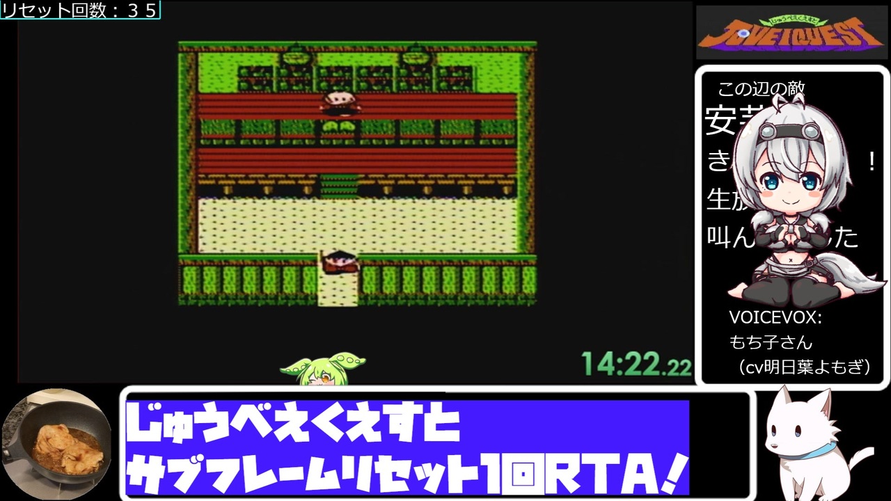 じゅうべえくえすとサブフレームリセット1回RTAの動画を作るのははじめてなので、初投稿です。<br>いいね! にじゅうべえくえすとサブフレームリセット1回RTAのプレイのポイントを書いています。<br><br>ファミコン実機でプレイしたものです。<br><br><br>アルバス姉貴兄貴の再々送動画#1もどうぞ!<br><a href="https://www.nicovideo.jp/watch/sm43241630" target="_blank" rel="noopener nofollow">https://www.nicovideo.jp/watch/sm43241630</a><br><br>参考にした動画はこちら<br>『じゅうべえくえすと なんでもありRTA サブフレームリセットチャート』気楽なRTAがしたい茜ちゃん #24<br><a href="https://www.nicovideo.jp/watch/sm43233271" target="_blank" rel="noopener nofollow">https://www.nicovideo.jp/watch/sm43233271</a><br><br>TAS動画もどうぞ!<br>【TAS】再々送 じゅうべえくえすと 2分54秒【FC】<br><a href="https://www.nicovideo.jp/watch/sm43224984" target="_blank" rel="noopener nofollow">https://www.nicovideo.jp/watch/sm43224984</a><br><br /><br>編集に使用させていただいているものは、プロフィールみてね!<br><a href="https://www.nicovideo.jp/user/311366" target="_blank" rel="noopener nofollow">https://www.nicovideo.jp/user/311366</a><br><br>読み上げ:VOICEVOX もち子(cv明日葉よもぎ)、ずんだもん、四国めたん、青山龍星、WhiteCUL、伊織弓鶴、COEIROINK:猫米茶<br><br><strong>過去の動画にコメント、いいね!、ギフト、広告、フォロー、マイリストありがとうございました!</strong><br><br>とり料理祭ありがとうございました!<br>2023参加作品はこちら ⇒ <a href="https://www.nicovideo.jp/mylist/75430531" target="_blank" rel="noopener nofollow">https://www.nicovideo.jp/mylist/75430531</a><br>2024冬参加作品はこちら ⇒ <a href="https://www.nicovideo.jp/mylist/75862737" target="_blank" rel="noopener nofollow">https://www.nicovideo.jp/mylist/75862737</a><br>2024夏参加作品はこちら ⇒ <a href="https://www.nicovideo.jp/mylist/76572716" target="_blank" rel="noopener nofollow">https://www.nicovideo.jp/mylist/76572716</a><br>2025冬参加作品はこちら ⇒ <a href="https://www.nicovideo.jp/mylist/77171241" target="_blank" rel="noopener nofollow">https://www.nicovideo.jp/mylist/77171241</a><br>2025夏参加作品はこちら ⇒ <a href="https://www.nicovideo.jp/mylist/77600849" target="_blank" rel="noopener nofollow">https://www.nicovideo.jp/mylist/77600849</a><br><br>このその日ごとになんか出す定食屋か駄菓子屋のごとき動画を継続して投稿するために<br>スポンサーをひっそり募集しております、あなたも一口いかが?<br><a href="https://creator-support.nicovideo.jp/registration/311366" target="_blank" rel="noopener nofollow">https://creator-support.nicovideo.jp/registration/311366</a>