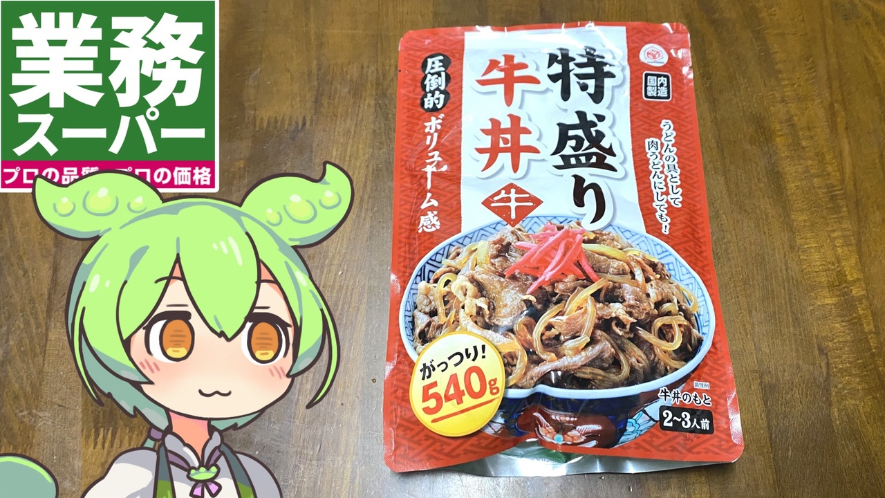 業務スーパーにあったデカイ牛丼です。<br><br><br>【参考】<br>特盛り牛丼(業務スーパー)<br><a href="https://www.gyomusuper.jp/product/detail.php?go_id=7156" target="_blank" rel="noopener nofollow">https://www.gyomusuper.jp/product/detail.php?go_id=7156</a><br>株式会社マスゼン<br><a href="http://masuzen.co.jp/index.html" target="_blank" rel="noopener nofollow">http://masuzen.co.jp/index.html</a><br>掲載企業詳細 株式会社マスゼン(WORK WORK 栃木)<br><a href="https://workwork-tochigi.jp/company/5078" target="_blank" rel="noopener nofollow">https://workwork-tochigi.jp/company/5078</a><br>牛丼(東)(トップバリュ)<br><a href="https://www.topvalu.net/items/detail/4549414161489/" target="_blank" rel="noopener nofollow">https://www.topvalu.net/items/detail/4549414161489/</a><br>牛丼(西)(トップバリュ)<br><a href="https://www.topvalu.net/items/detail/4549414143492/" target="_blank" rel="noopener nofollow">https://www.topvalu.net/items/detail/4549414143492/</a><br><br><br>【使用した素材】(※敬称略)<br>(合成音声)VOICEVOX/ずんだもん/四国めたん/<br><a href="https://voicevox.hiroshiba.jp/" target="_blank" rel="noopener nofollow">https://voicevox.hiroshiba.jp/</a><br>(立ち絵)坂本アヒル<br><a href="https://seiga.nicovideo.jp/seiga/im10788496" target="_blank" rel="noopener">im10788496</a>/<a href="https://seiga.nicovideo.jp/seiga/im10791276" target="_blank" rel="noopener">im10791276</a><br>(楽曲)甘茶の音楽工房/「楽しい麦畑」「フルーツパフェ」「お城の舞踏会」<br><a href="https://amachamusic.chagasi.com/" target="_blank" rel="noopener nofollow">https://amachamusic.chagasi.com/</a>