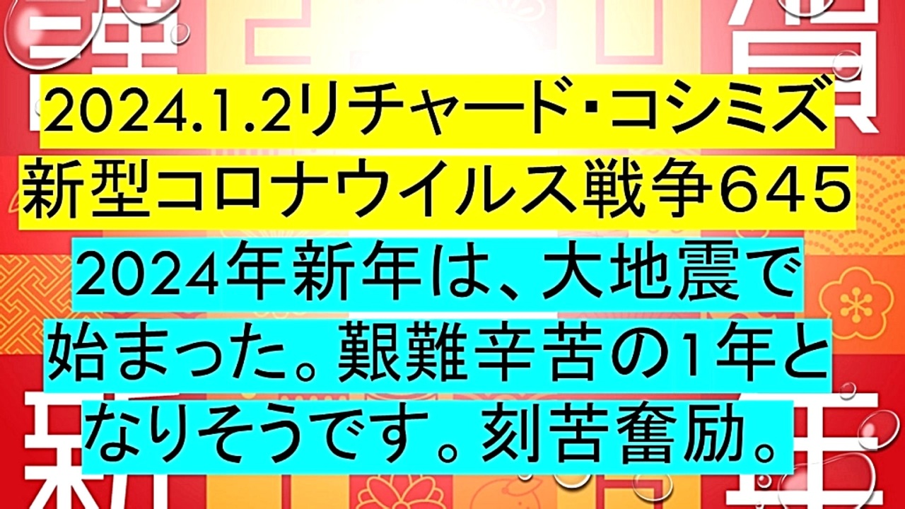 <span style="color: #cc4125;"><strong>「 テーマ : 新型コロナウイルス戦争 645 」</strong></span><br><br><span style="color: #ff0000;"><strong>「『 2024年 新年 』は、『 大地震 』で始まった。『 艱難辛苦の1年 』となりそうです。『 刻苦奮励 』」</strong></span><br><br><span style="color: #0000ff;"><strong>「『 イベルメクチン・アビガン・その他コロナ対策 』について、ご意見をお寄せ下さい! 」<br> ◐ E-mail : richardkoshimizu@gmail.com</strong></span><br><br> <span style="color: #38761d;"><strong>◐ リチャード・コシミズ『 ニコニコ動画⦅ 全動画 ⦆』公式 動画ギャラリー</strong></span><br> <span style="color: #38761d;"><strong><a href="https://www.nicovideo.jp/user/121957117/video" target="_blank" rel="noopener nofollow">https://www.nicovideo.jp/user/121957117/video</a></strong></span><br><br> <span style="color: #38761d;"><strong>◐ リチャード・コシミズ『 ニコニコ動画⦅ 333 ~ ⦆』公式 動画ギャラリー</strong></span><br> <span style="color: #38761d;"><strong><a href="https://www.nicovideo.jp/user/121028600/video" target="_blank" rel="noopener nofollow">https://www.nicovideo.jp/user/121028600/video</a></strong></span><br><br> <span style="color: #38761d;"><strong>◐ リチャード・コシミズ『 ニコニコ動画⦅ テーマ別 ⦆』公式 動画ギャラリー</strong></span><br> <span style="color: #38761d;"><strong><a href="https://www.nicovideo.jp/user/121192513/video" target="_blank" rel="noopener nofollow">https://www.nicovideo.jp/user/121192513/video</a></strong></span><br><br> <span style="color: #38761d;"><strong>◐ リチャード・コシミズ『 Rumble 』公式 動画ギャラリー</strong></span><br> <span style="color: #38761d;"><strong><a href="https://rumble.com/user/richardkoshimizu" target="_blank" rel="noopener nofollow">https://rumble.com/user/richardkoshimizu</a></strong></span><br><br>