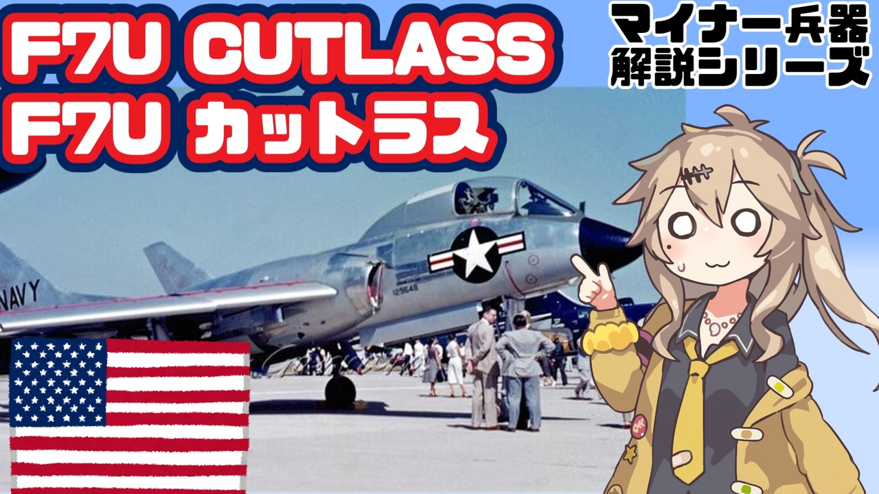 「ダン◯ョン飯」と「魔法◯女に憧れて」を見た後、「マルシルのためにご飯を作る原住民兄貴」、「製鉄でトレスマジアを苦しめる原住民兄貴」、「トレスマジアを芸術品にするタクヤさん」の3つのネタを思いつきましたが、「オチの付け方が分からない」、「製鉄が何なのか分からない癖に製鉄ネタを使うのはリスペクトが足りない」、「最後のはカミーユ兄貴かヌルダスティヌス兄貴がいつかやるだろう」といった理由で記憶の彼方に放り投げました。<br><br><a href="https://www.nicovideo.jp/mylist/74547937" target="_blank" rel="noopener">mylist/74547937</a><br>Youtube版→<a href="https://youtu.be/vhmc8j915XQ" target="_blank" rel="noopener nofollow">https://youtu.be/vhmc8j915XQ</a><br><br>参考文献:<br>英語版Wikipedia<br><br>AirVectors「Vought F-8 Crusader - [1.0]Crusader In Development」<br><a href="https://www.airvectors.net/avcrus_1.html" target="_blank" rel="noopener nofollow">https://www.airvectors.net/avcrus_1.html</a><br><br>「STANDARD AIRCRAFT CHARACTERISTICS F7U-3M "CUTLASS"」(米軍公式資料)<br><a href="https://web.archive.org/web/20221008013633/http://www.alternatewars.com/SAC/F7U-3M_Cutlass_SAC_-_15_May_1955.pdf" target="_blank" rel="noopener nofollow">https://web.archive.org/web/20221008013633/http://www.alternatewars.com/SAC/F7U-3M_Cutlass_SAC_-_15_May_1955.pdf</a><br><br>Smithonian MAGAZINE「In the early jet age, pilots had good reason to fear the F7U」<br><a href="https://www.smithsonianmag.com/air-space-magazine/the-gutless-cutlass-12023991/" target="_blank" rel="noopener nofollow">https://www.smithsonianmag.com/air-space-magazine/the-gutless-cutlass-12023991/</a><br><br>A Photographic History of NAF & VX-5 at NOTS China Lake「1955 Photo Gallery.」<br><a href="http://www.chinalakealumni.org/1955/1955mo.htm#thumb" target="_blank" rel="noopener nofollow">http://www.chinalakealumni.org/1955/1955mo.htm#thumb</a><br><br>蛇乃目伍長の「エアフォースの英国面に来い!」 Mk.2「まだまだ謎多きカットラス」<br><a href="http://blog.livedoor.jp/janome_gotyou/archives/54716851.html" target="_blank" rel="noopener nofollow">http://blog.livedoor.jp/janome_gotyou/archives/54716851.html</a><br><br>「世界の傑作機 No.132 チャンス・ヴォートF7Uカットラス」(文林堂 2009)<br><br>使用素材集<br>BGM:アヒルのテーマ(鋼鉄の咆哮3より)<br>背景映像:昭和56年防衛庁記録<br><a href="https://youtu.be/_MF8zGUFn_Y" target="_blank" rel="noopener nofollow">https://youtu.be/_MF8zGUFn_Y</a><br>いらすと:いらすとや様