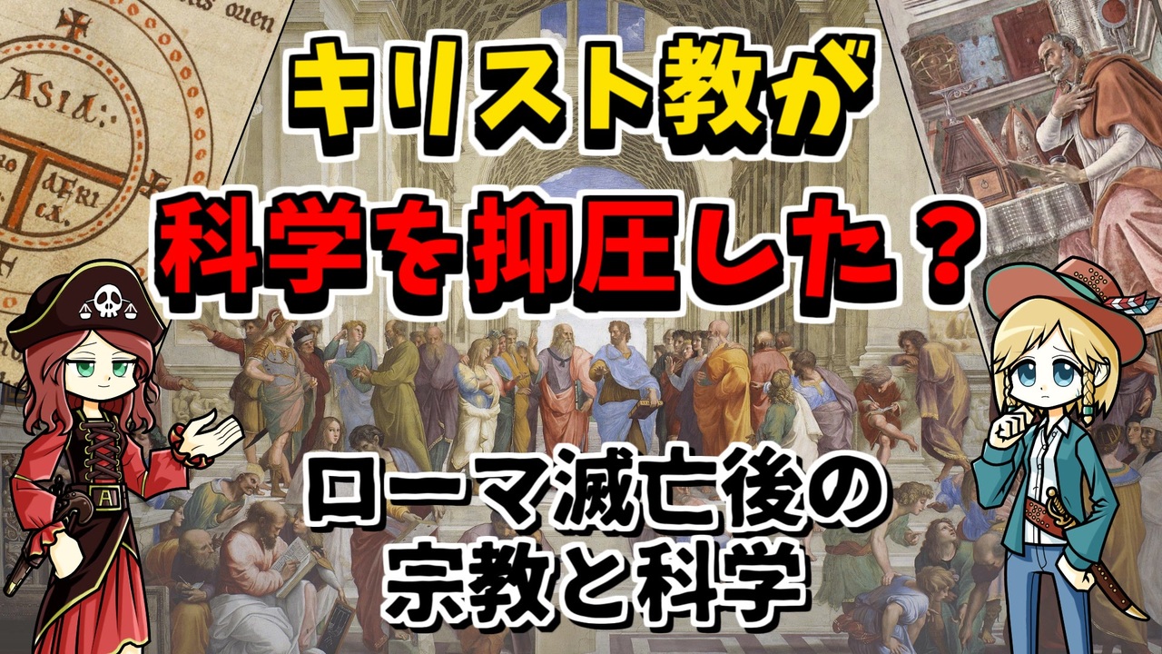 能登半島への寄付ギフトはこちらの動画から↓↓↓<br><a href="https://www.nicovideo.jp/watch/sm43233483" class="watch">sm43233483</a><br><br>キリスト教は科学を抑圧した!という意見。<br>歴史をまったく知らない人よりも、そこそこ詳しいと自認する人に多いのではないかな?とか思ってます。<br><br>「キリスト教は教義のために科学を否定した」<br><br>そうなのかなー??果たして果たして。<br><br>0:00 オープニング<br>1:03 キリスト教による科学の否定?<br>7:20 宗教と科学は対立する?<br>15:43 カトリック教会と科学<br>23:26 エンディング<br><br><br>今回の参考文献:<br><br>ウィンストン・ブラック(2021)『中世ヨーロッパ ファクトとフィクション』大貫俊夫監訳 平凡社 → <a href="https://amzn.to/3tPCSfC" target="_blank" rel="noopener nofollow">https://amzn.to/3tPCSfC</a><br>伊東俊太郎(2016)『十二世紀ルネサンス』講談社 → <a href="https://amzn.to/3HbMRPw" target="_blank" rel="noopener nofollow">https://amzn.to/3HbMRPw</a><br>田中一郎(2015)『ガリレオ裁判 ━ 400年後の真実』岩波書店 → <a href="https://amzn.to/3U3eNfQ" target="_blank" rel="noopener nofollow">https://amzn.to/3U3eNfQ</a><br>ピーター・ブラウン(2016)『古代末期の世界』宮島直機訳 刀水書房 → <a href="https://amzn.to/48LyAVq" target="_blank" rel="noopener nofollow">https://amzn.to/48LyAVq</a><br>ジョゼフ・ギース/フランシス・ギース(2012)『大聖堂・製鉄・水車 中世ヨーロッパのテクノロジー』栗原泉訳 講談社 → <a href="https://amzn.to/3RXMHzY" target="_blank" rel="noopener nofollow">https://amzn.to/3RXMHzY</a><br>アレクサンダー・モンロー(2017)『紙と人との歴史』御舩 由美子 , 加藤 晶 訳 原書房 → <a href="https://amzn.to/48oKNzw" target="_blank" rel="noopener nofollow">https://amzn.to/48oKNzw</a><br>宮田律(2022)『イスラムがヨーロッパ世界を創造した』光文社 → <a href="https://amzn.to/3TXqQLY" target="_blank" rel="noopener nofollow">https://amzn.to/3TXqQLY</a><br>YouVersion <a href="https://www.bible.com/ja" target="_blank" rel="noopener nofollow">https://www.bible.com/ja</a><br><br>その他 Wikipediaなど<br />━━━━━━━━━━━━━━━━━━━━━<br><br>この動画はクリエイティブ・コモンズ継承(CC-BY-SA)ライセンスの素材を使用して制作しています。(<a href="https://creativecommons.org/licenses/by-sa/4.0/)" target="_blank" rel="noopener nofollow">https://creativecommons.org/licenses/by-sa/4.0/)</a><br>規約に基づき、この動画もCC-BY-SA 4.0 のもとで公開します。<br><br>投稿者共通情報☆彡<br><br>BGM, SE:ニコニ・コモンズ様<br><a href="http://commons.nicovideo.jp/" target="_blank" rel="noopener nofollow">http://commons.nicovideo.jp/</a><br>魔王魂様<br><a href="https://maoudamashii.jokersounds.com/" target="_blank" rel="noopener nofollow">https://maoudamashii.jokersounds.com/</a><br>Audiostock様<br><a href="https://audiostock.jp/" target="_blank" rel="noopener nofollow">https://audiostock.jp/</a><br><br>立ち絵 霊夢・魔理沙(黒子式):nicotalk様<br><a href="http://www.nicotalk.com/charasozai.html" target="_blank" rel="noopener nofollow">http://www.nicotalk.com/charasozai.html</a><br><br>立ち絵 パトラ、マリー、アン、メアリ:ライフライフ様<br><a href="https://0801lifelife.tumblr.com/" target="_blank" rel="noopener nofollow">https://0801lifelife.tumblr.com/</a><br><br>使用ツール1:ゆっくりムービーメーカー4<br><a href="https://manjubox.net/ymm4/" target="_blank" rel="noopener nofollow">https://manjubox.net/ymm4/</a><br><br>使用ツール2:AviUtl<br><a href="http://spring-fragrance.mints.ne.jp/aviutl/" target="_blank" rel="noopener nofollow">http://spring-fragrance.mints.ne.jp/aviutl/</a><br><br>各時代の地図 : World History Maps & Timelines <br><a href="http://geacron.com/home-en/" target="_blank" rel="noopener nofollow">http://geacron.com/home-en/</a><br><br>ゆっくりボイスについて:AquesTalkライセンス取得済み<br><br>キャラクターボイス<br>アン・ボニー:羽ノ華(A.I.VOICE)<br>メアリ・リード:琴葉 葵(A.I.VOICE)<br>クレオパトラ:結月ゆかり(VOICEROID2)<br>マリー‐アントワネット:東北きりたん (VOICEROID EX)<br>その他キャラ:青山龍星(A.I.VOICE)、伊織弓鶴(A.I.VOICE2)、栗田まろん(A.I.VOICE)、宮舞モカ(VOICEPEAK)、フリモメン(VOICEPEAK)<br><br><br><br>その他フリー素材ご提供元の皆様に圧倒的感謝<br>