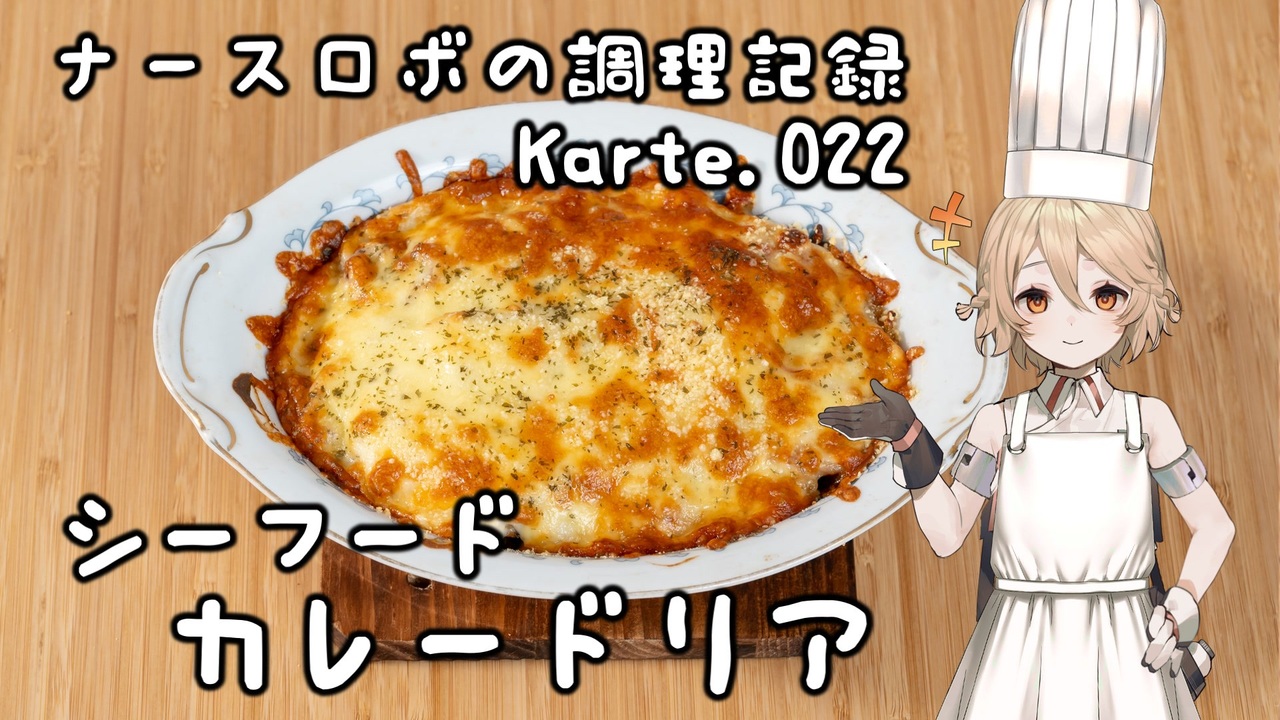 第二十ニ回はシーフードカレードリア!<br>シーフードのカレーピラフをドリアにしたものです!<br>私が昔洋食屋さんで好きだったメニューを再現してみました。<br>ちょっとした遊び心のある仕掛けつき!<br>皆さんもぜひ作ってみてくださいね。<br><br>音声: VOICEVOX:ナースロボ_タイプT<br>立ち絵: 捨て犬A<br>イラスト: いらすとや<br>SE: otologic, 効果音ラボ<br>BGM: BGMer<br /><br>[各種リンク]<br>ニコニコ動画: <a href="http://nicovideo.jp/user/130153578" target="_blank" rel="noopener nofollow">http://nicovideo.jp/user/130153578</a><br>YouTubeメイン(料理): <a href="http://youtube.com/@cooking25euph" target="_blank" rel="noopener nofollow">http://youtube.com/@cooking25euph</a><br>YouTubeサブ(料理以外): <a href="https://youtube.com/@sub25euph" target="_blank" rel="noopener nofollow">https://youtube.com/@sub25euph</a><br>X (twitter): <a href="https://twitter.com/nico25euph" target="_blank" rel="noopener nofollow">https://twitter.com/nico25euph</a><br>Bluesky: <a href="http://nico25euph.bsky.social" target="_blank" rel="noopener nofollow">http://nico25euph.bsky.social</a><br>TikTok: <a href="http://tiktok.com/@nico25euph" target="_blank" rel="noopener nofollow">http://tiktok.com/@nico25euph</a>