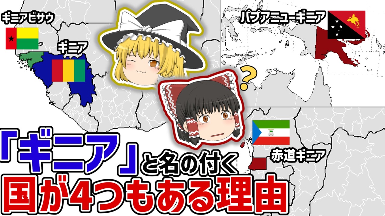 今回はゆるーい解説動画となっております~<br>世界には「ギニア」と名の付く国がなぜか4つもあるんですね、<br>その理由を軽く解説してみました<br><br>・アフリカ第三位の産油国で独裁国家な赤道ギニアの解説動画<br> <a href="https://www.nicovideo.jp/watch/sm43271763?ref=garage_share_other" target="_blank" rel="noopener nofollow">https://www.nicovideo.jp/watch/sm43271763?ref=garage_share_other</a><br>・実は西アフリカの水源を握るギニアの解説動画<br> <a href="https://www.nicovideo.jp/watch/sm42394894?ref=garage_share_other" target="_blank" rel="noopener nofollow">https://www.nicovideo.jp/watch/sm42394894?ref=garage_share_other</a><br>・ギニアビサウ<br>→まだ<br><br><br><br>◆マイリスト→<a href="https://www.nicovideo.jp/mylist/73354161" target="_blank" rel="noopener nofollow">https://www.nicovideo.jp/mylist/73354161</a><br>◆アフリカの情報を上げてるうぷ主のTwitter→<a href="https://twitter.com/AfrikaanerMaris" target="_blank" rel="noopener nofollow">https://twitter.com/AfrikaanerMaris</a><br><br>いいねくれるとうれしいです<br>いっぱいコメントしてくれるとうぷ主が喜びます。<br>