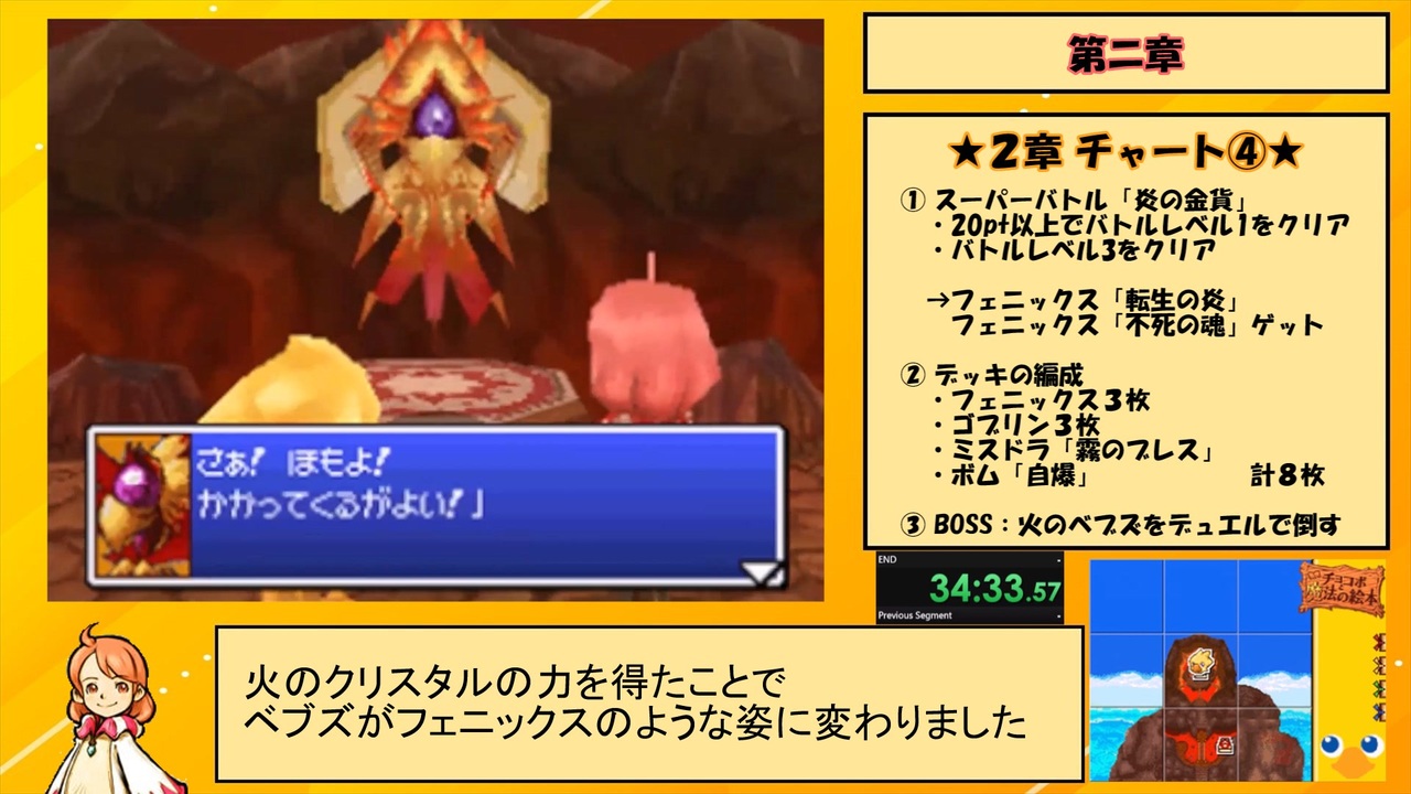 火山を突き進むPart2<br>ちょっと短いけどキリが良いからね仕方ないね<br><br>ベヒーモス撃破~2章終了まで<br><br>前:<a href="https://www.nicovideo.jp/watch/sm43275357" class="watch">sm43275357</a><br>次:<a href="https://www.nicovideo.jp/watch/sm43312982" class="watch">sm43312982</a><br><br>総集編:<a href="https://youtu.be/-QvFHQ-RklI" target="_blank" rel="noopener nofollow">https://youtu.be/-QvFHQ-RklI</a><br>ほぼ無編集版:<a href="https://youtu.be/4nFiGocf2Dg" target="_blank" rel="noopener nofollow">https://youtu.be/4nFiGocf2Dg</a><br><br>使用ハード:3DS LL (偽トロ)<br>タイマースタート:ストーリーモードを選択した時<br>タイマーストップ:ED直前の暗転した時<br><br><br><br><br><a target="_blank" href="https://qa.nicovideo.jp/faq/show/19424?site_domain=default" style="font-size: 13px;color: #657586; text-decoration: underline; line-height: 1.4">この動画は投稿者によって修正されました</a>