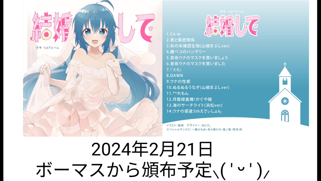 はじめまして子牛です。<br>やっとこさフルアルバムを出します。<br><br>1.Co-w<br>2.君と緊密関係<br>3.秋の未確認生物(山椒まぶしver)<br>4.腹ペコのハングリー<br>5.音街ウナのマスクを買いましょう<br>6.音街ウナのマスクを買いました<br>7.『±0』<br>8.DAWN<br>9.ウナの性惑<br>10.ぬるぬるうなぎ(山椒まぶしver)<br>11.**れもん<br>12.月面探査機!かぐや姫<br>13.海のサーチライト(浜松ver)<br>14.ウナの惑星5thえでぃしょん<br><br>制作:子牛<br><a href="https://twitter.com/COWshi504" target="_blank" rel="noopener nofollow">https://twitter.com/COWshi504</a><br><br>イラスト:鮭味<br><a href="https://twitter.com/11Meronpan" target="_blank" rel="noopener nofollow">https://twitter.com/11Meronpan</a><br><br>デザイナー:めこた<br><a href="https://twitter.com/mee_mee_mee____" target="_blank" rel="noopener nofollow">https://twitter.com/mee_mee_mee____</a>