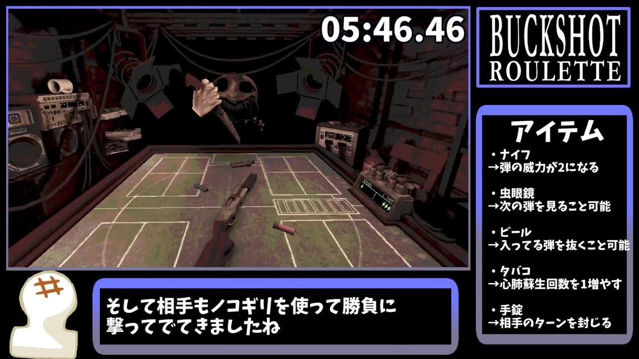 「BUCKSHOT ROULETTE」のRTA動画です<br><br>speedrun.com→<a href="https://www.speedrun.com/ja-JP/Buckshot_Roulette?h=any&x=9d8zg13d" target="_blank" rel="noopener nofollow">https://www.speedrun.com/ja-JP/Buckshot_Roulette?h=any&x=9d8zg13d</a><br>ゲームDLサイト→<a href="https://mikeklubnika.itch.io/buckshot-roulette" target="_blank" rel="noopener nofollow">https://mikeklubnika.itch.io/buckshot-roulette</a><br><br><span style="color: #000000; font-size: 14px;">単発RTA→</span><span style="color: #006699; font-size: 14px;"><a href="https://www.nicovideo.jp/mylist/66917940" target="_blank" rel="noopener">mylist/66917940</a></span><br><br>生放送コミュ→co4338697<br><br><span style="color: #000000; font-size: 14px;">ΔYoutube→</span><span style="color: #006699; font-size: 14px;"><a href="https://www.youtube.com/channel/UC4jVPBw6dP3mXCGJvRi3Xbw?view_as=subscriber" target="_blank" rel="noopener nofollow">https://www.youtube.com/channel/UC4jVPBw6dP3mXCGJvRi3Xbw?view_as=subscriber</a></span>