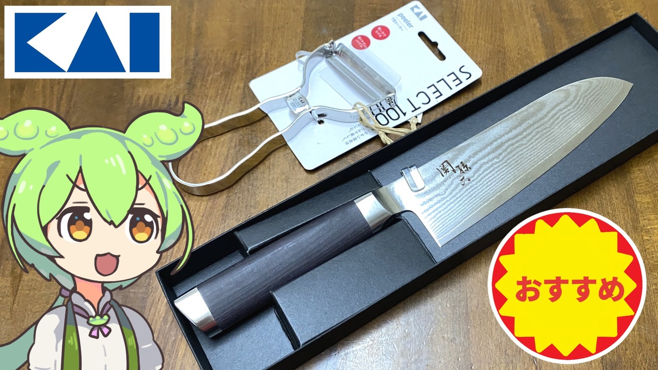 今回は岐阜県関市で創業した貝印株式会社のダマスカス三徳包丁とピーラーです。<br><br><br>【参考】<br>【名入れ対応】 関孫六 ダマスカス 三徳包丁 165mm(貝印オンラインストア)<br><a href="https://www.kai-group.com/store/products/detail/12376" target="_blank" rel="noopener nofollow">https://www.kai-group.com/store/products/detail/12376</a><br>SELECT100 T型ピーラー(貝印オンラインストア)<br><a href="https://www.kai-group.com/store/products/detail/994" target="_blank" rel="noopener nofollow">https://www.kai-group.com/store/products/detail/994</a><br>沿革(貝印株式会社)<br><a href="https://www.kai-group.com/global/about/history.html" target="_blank" rel="noopener nofollow">https://www.kai-group.com/global/about/history.html</a><br>関孫六ヒストリー(貝印株式会社)<br><a href="https://www.kai-group.com/products/brand/sekimagoroku/about/" target="_blank" rel="noopener nofollow">https://www.kai-group.com/products/brand/sekimagoroku/about/</a><br>せきのまど(関市観光協会)<br><a href="https://sekikanko.jp/" target="_blank" rel="noopener nofollow">https://sekikanko.jp/</a><br>関市・武儀郡町村合併協議会(関市)<br><a href="https://www.city.seki.lg.jp/0000002784.html" target="_blank" rel="noopener nofollow">https://www.city.seki.lg.jp/0000002784.html</a><br>BESTPRICE ステンレス三徳包丁(トップバリュ)<br><a href="https://www.topvalu.net/items/detail/4549741274050/" target="_blank" rel="noopener nofollow">https://www.topvalu.net/items/detail/4549741274050/</a><br>FC岐阜公式X2024年1月7日<br><a href="https://twitter.com/fcgifuDREAM/status/1743887817317777635" target="_blank" rel="noopener nofollow">https://twitter.com/fcgifuDREAM/status/1743887817317777635</a><br>貝印公式X2024年1月12日<br><a href="https://twitter.com/kai_corporation/status/1745629745289818455" target="_blank" rel="noopener nofollow">https://twitter.com/kai_corporation/status/1745629745289818455</a><br><br><br>【使用した素材】(※敬称略)<br>(合成音声)VOICEVOX/ずんだもん/四国めたん/<br><a href="https://voicevox.hiroshiba.jp/" target="_blank" rel="noopener nofollow">https://voicevox.hiroshiba.jp/</a><br>(立ち絵)坂本アヒル<br><a href="https://seiga.nicovideo.jp/seiga/im10788496" target="_blank" rel="noopener">im10788496</a>/<a href="https://seiga.nicovideo.jp/seiga/im10791276" target="_blank" rel="noopener">im10791276</a><br>(楽曲)甘茶の音楽工房/「日々是好日」<br><a href="https://amachamusic.chagasi.com" target="_blank" rel="noopener nofollow">https://amachamusic.chagasi.com</a>