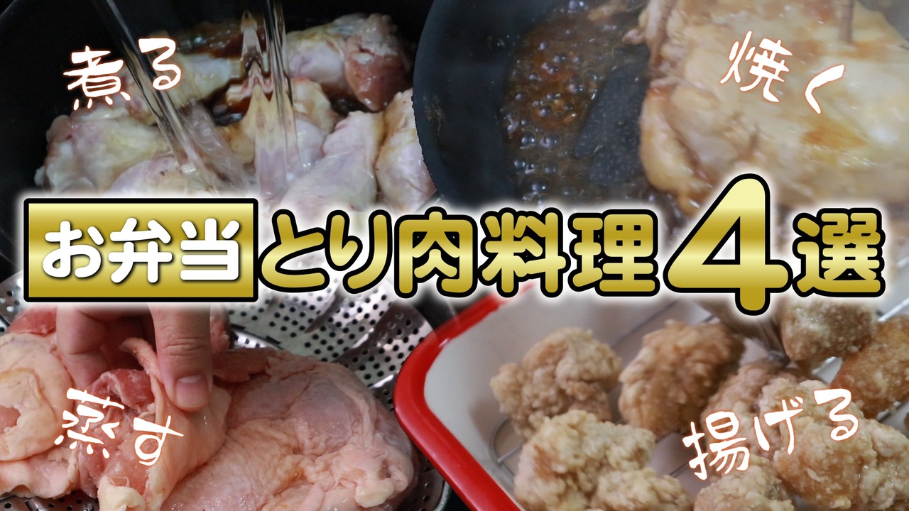 参考レシピ:<br>-----------------------------------------------------<br>■唐揚げ定番の味<br>□材料<br>むね肉…1枚<br>しょうがチューブ…大さじ2<br>にんにくチューブ…大さじ1<br>砂糖…大さじ1<br>しょうゆ…大さじ1<br>お酒…大さじ3<br>小麦粉…100ml<br>片栗粉…30ml<br>①鶏肉にフォークで穴をあけ、食べやすい大きさにカット<br>②材料を袋に全て入れ30分~1晩漬け込む<br>③小麦粉100mlと片栗粉30ml混ぜ、鶏肉に衣をつける<br>④ザルで無駄な粉を落とし、160℃で中火で5分揚げる<br>⑤強火にして3分<br>-----------------------------------------------------<br>■照り焼きチキン<br>□材料<br>むね肉…1枚<br>片栗粉…大さじ2<br>みりん…大さじ2<br>しょうゆ…大さじ2<br>砂糖…大さじ2<br>①鶏肉にアルミホイル・水を入れた鍋をを乗せ皮の面を焼く<br>②そのままで10分、フタをして10分弱火で焼く<br>③調味料を全て入れ、水気がなくなるまで焦げないように焼く<br>-----------------------------------------------------<br>■手羽のすっぱ煮<br>□材料<br>手羽…1パック<br>水…手羽が数ミリ見える出えうぐらい<br>砂糖…大さじ2、<br>味ぽん…ボトル半分<br>①手羽を加熱して焼き目を付ける<br>②残りの材料を入れて15分煮る<br>-----------------------------------------------------<br>■よだれ鳥<br><a href="https://www.kurashiru.com/recipes/44623d0e-bb2e-4510-a3ca-f19a2a0301b4" target="_blank" rel="noopener nofollow">https://www.kurashiru.com/recipes/44623d0e-bb2e-4510-a3ca-f19a2a0301b4</a><br>-----------------------------------------------------<br><br>動画シリーズ名:嫌がる娘に無理やり弁当を持たせてみた<br />□X:<a href="https://x.com/hidegonsu" target="_blank" rel="noopener nofollow">https://x.com/hidegonsu</a> <br>□YouTube:<a href="https://www.youtube.com/user/hideogonsu" target="_blank" rel="noopener nofollow">https://www.youtube.com/user/hideogonsu</a>