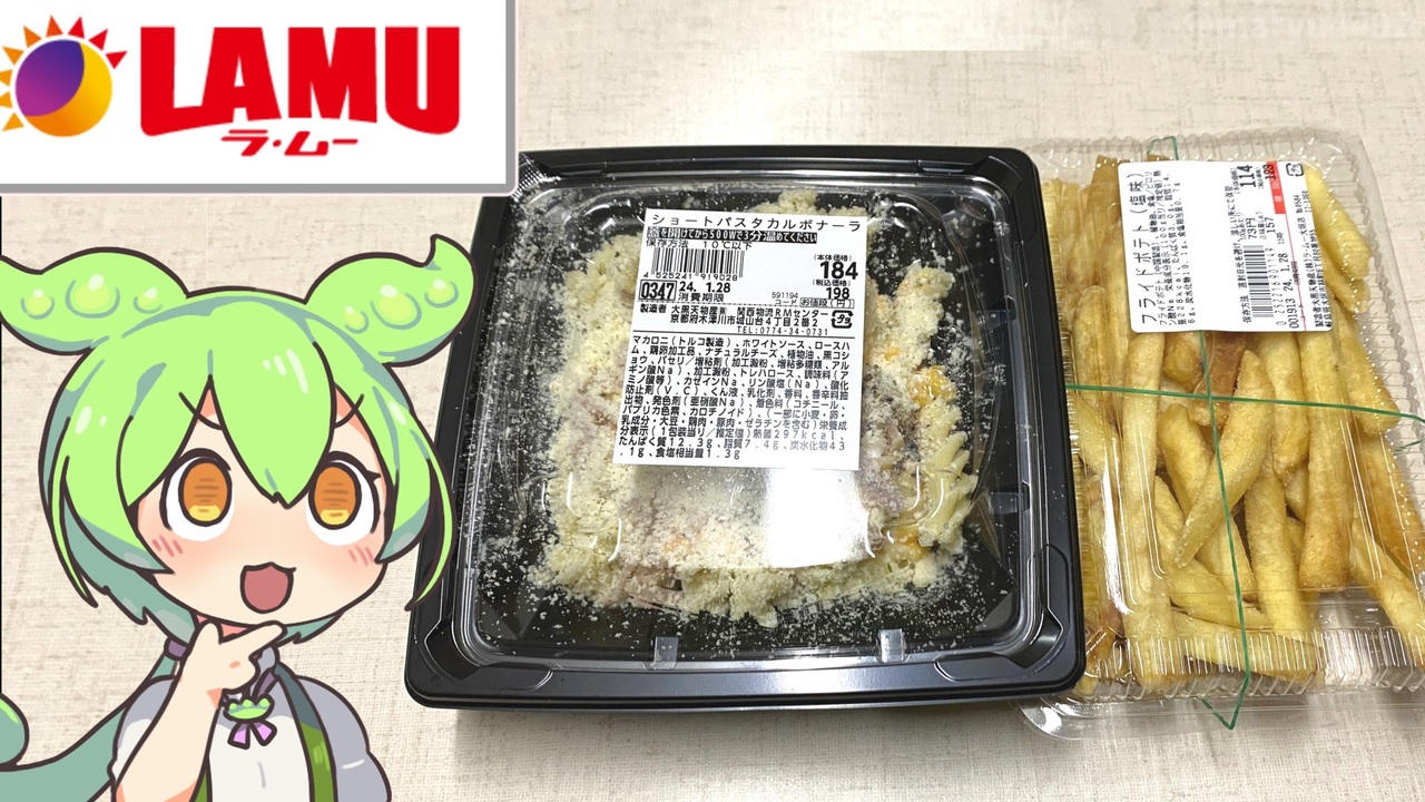 目当てのお弁当が売り切れてしまい、残っていたものを買ってきました。<br><br><br>----------------------------------------------------------------------------------------------<br>【関連動画】<br>ずんだもんとラ・ムーで買った「ねぎとろ巻(276円)」<br><a href="https://www.nicovideo.jp/watch/sm42904525" target="_blank" rel="noopener nofollow">https://www.nicovideo.jp/watch/sm42904525</a><br>----------------------------------------------------------------------------------------------<br>【参考】<br>大黒天物産株式会社<br><a href="https://www.e-dkt.co.jp/" target="_blank" rel="noopener nofollow">https://www.e-dkt.co.jp/</a><br>カルボナーラの語源とは?おすすめのレシピもご紹介!(DELISH KITCHEN)<br><a href="https://delishkitchen.tv/articles/333" target="_blank" rel="noopener nofollow">https://delishkitchen.tv/articles/333</a><br>----------------------------------------------------------------------------------------------<br>【使用した素材】(※敬称略)<br>(合成音声)VOICEVOX/ずんだもん/四国めたん<br><a href="https://voicevox.hiroshiba.jp/" target="_blank" rel="noopener nofollow">https://voicevox.hiroshiba.jp/</a><br>(立ち絵)坂本アヒル<br><a href="https://seiga.nicovideo.jp/seiga/im10788496" target="_blank" rel="noopener">im10788496</a>/<a href="https://seiga.nicovideo.jp/seiga/im10791276" target="_blank" rel="noopener">im10791276</a><br>(楽曲)甘茶の音楽工房/「楽しい麦畑」「フルーツパフェ」「お城の舞踏会」<br><a href="https://amachamusic.chagasi.com/" target="_blank" rel="noopener nofollow">https://amachamusic.chagasi.com/</a>