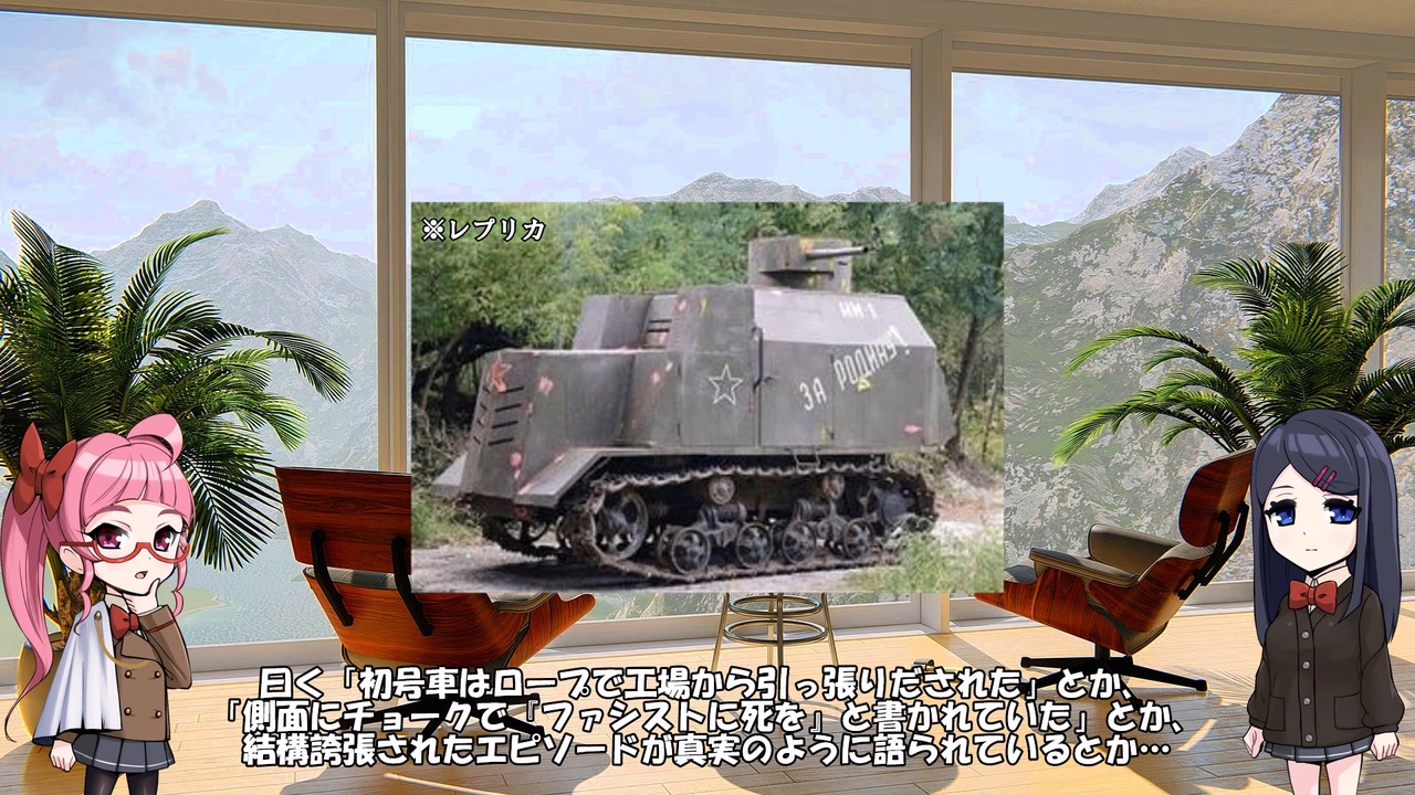 長らくお待たせ致しました。ゆっ珍の最新号でございます。<br>ってなわけで記念すべき第60回は以前からリクエストもあったオデッサ戦車の紹介です。<br>数ヶ月前にアシュアとマルフーシャがコラボしたと思ったら、まさかオデッサ戦車を引っ提げて現れるとは思わなかったじゃん??<br>ちなマルフーシャの作者さんはストローちゃんの相互フォロワーなので、みんな買ってくれ<br><br>・BGM(またYTの偽権利者が凄いので古いJAZZは犠牲になりました)<br>「Good noon」「Exploration」「海辺のステップ」「December Nights」「Cafe de swing」<br>全てDOVAより<br><br>・参考文献、画像引用元<br><a href="https://tanks-encyclopedia.com/ww2/soviet/soviet_NI_Odessa_tank.php" target="_blank" rel="noopener nofollow">https://tanks-encyclopedia.com/ww2/soviet/soviet_NI_Odessa_tank.php</a><br><br><a href="http://armor.kiev.ua/Tanks/WWII/tractor/bronetr3.html" target="_blank" rel="noopener nofollow">http://armor.kiev.ua/Tanks/WWII/tractor/bronetr3.html</a><br><br><a href="https://weaponsystems.net/system/1354-STZ-5" target="_blank" rel="noopener nofollow">https://weaponsystems.net/system/1354-STZ-5</a><br><br><a href="https://www.youtube.com/watch?v=v2FPtd0eR_o" target="_blank" rel="noopener nofollow">https://www.youtube.com/watch?v=v2FPtd0eR_o</a><br><br>・Tips!!のソース<br><a href="https://web.archive.org/web/20121007034908/http://www.dtic.mil/cgi-bin/GetTRDoc?AD=AD904092&Location=U2&doc=GetTRDoc.pdf" target="_blank" rel="noopener nofollow">https://web.archive.org/web/20121007034908/http://www.dtic.mil/cgi-bin/GetTRDoc?AD=AD904092&Location=U2&doc=GetTRDoc.pdf</a><br><a href="https://en.wikipedia.org/wiki/Self-sealing_fuel_tank" target="_blank" rel="noopener nofollow">https://en.wikipedia.org/wiki/Self-sealing_fuel_tank</a><br><br><br />BGM(2025/1/31~):若林タカツグ<br><a href="https://x.com/cocoa2448" target="_blank" rel="noopener nofollow">https://x.com/cocoa2448</a><br><a href="https://youtube.com/@Takatsugu" target="_blank" rel="noopener nofollow">https://youtube.com/@Takatsugu</a><br><br>告知用X→@straw3rd(<a href="https://twitter.com/straw3rd" target="_blank" rel="noopener nofollow">https://twitter.com/straw3rd</a> )<br>イラスト提供者様(2024~)→<a href="https://twitter.com/TheoryIV" target="_blank" rel="noopener nofollow">https://twitter.com/TheoryIV</a><br>お題箱(兵器のリクエストはここへ)→<a href="http://odaibako.net/u/straw2nd" target="_blank" rel="noopener nofollow">http://odaibako.net/u/straw2nd</a><br>サークルHP(ブログでも兵器解説してるよ→<a href="http://teambtrb.com/" target="_blank" rel="noopener nofollow">http://teambtrb.com/</a><br>サブスクじゃない投げ銭入れ→<a href="https://ofuse.me/straw3991" target="_blank" rel="noopener nofollow">https://ofuse.me/straw3991</a>