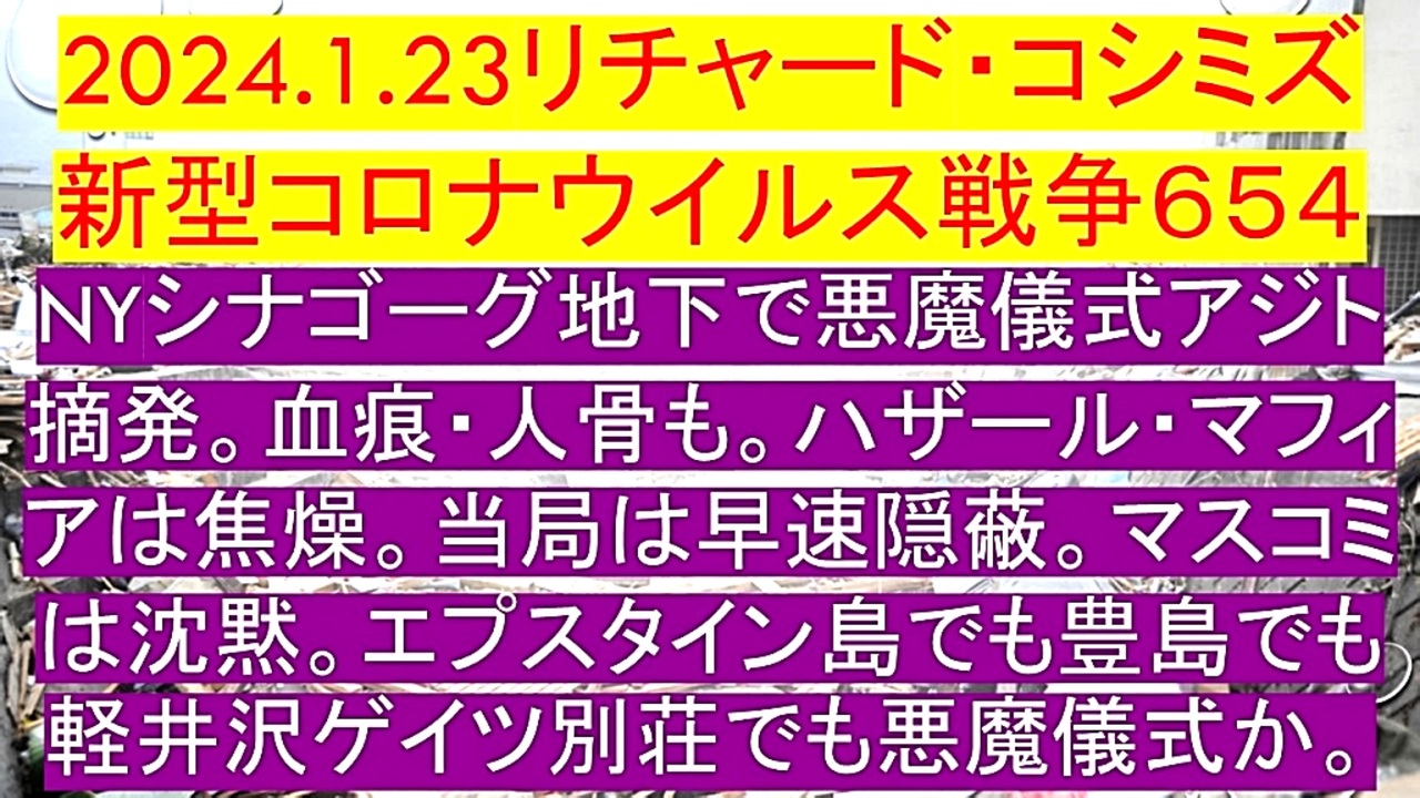 <span style="color: #cc4125;"><strong>「 テーマ : 新型コロナウイルス戦争 654 」</strong></span><br><br><span style="color: #ff0000;"><strong>「『 NYシナゴーグ地下 』で『 悪魔儀式アジト 』摘発。『 血痕・人骨 』も。<br> 『 ハザール・マフィアは焦燥 』。『 当局 』は、『 早速隠蔽 』。『 マスコミは沈黙 』。<br> 『 エプスタイン島 』でも『 豊島 』でも『 軽井沢ゲイツ別荘 』でも、『 悪魔儀式 』か 」</strong></span><br><br> <span style="color: #38761d;"><strong>◐ リチャード・コシミズ・チャンネル『⦅ ニコニコ チャンネル ⦆』</strong></span><br> <span style="color: #38761d;"><strong><a href="https://ch.nicovideo.jp/richardkoshimizu" target="_blank" rel="noopener nofollow">https://ch.nicovideo.jp/richardkoshimizu</a><br><br> ◐ リチャード・コシミズ『 ニコニコ生放送⦅ LIVE ⦆』</strong></span><br> <span style="color: #38761d;"><strong><a href="https://www.nicovideo.jp/user/120930363/live_programs" target="_blank" rel="noopener nofollow">https://www.nicovideo.jp/user/120930363/live_programs</a><br><br> ◐ リチャード・コシミズ『 Rumble 』公式 動画ギャラリー</strong></span><br> <span style="color: #38761d;"><strong><a href="https://rumble.com/user/richardkoshimizu" target="_blank" rel="noopener nofollow">https://rumble.com/user/richardkoshimizu</a></strong></span><br><br> <span style="color: #38761d;"><strong>◐ リチャード・コシミズ『 ニコニコ動画⦅ 全動画 ⦆』公式 動画ギャラリー</strong></span><br> <span style="color: #38761d;"><strong><a href="https://www.nicovideo.jp/user/121957117/video" target="_blank" rel="noopener nofollow">https://www.nicovideo.jp/user/121957117/video</a></strong></span><br><br> <span style="color: #38761d;"><strong>◐ リチャード・コシミズ 公式『 ブログ 』</strong></span><br> <span style="color: #38761d;"><strong><a href="http://08054623210.jugem.jp/" target="_blank" rel="noopener nofollow">http://08054623210.jugem.jp/</a></strong></span><br><br>