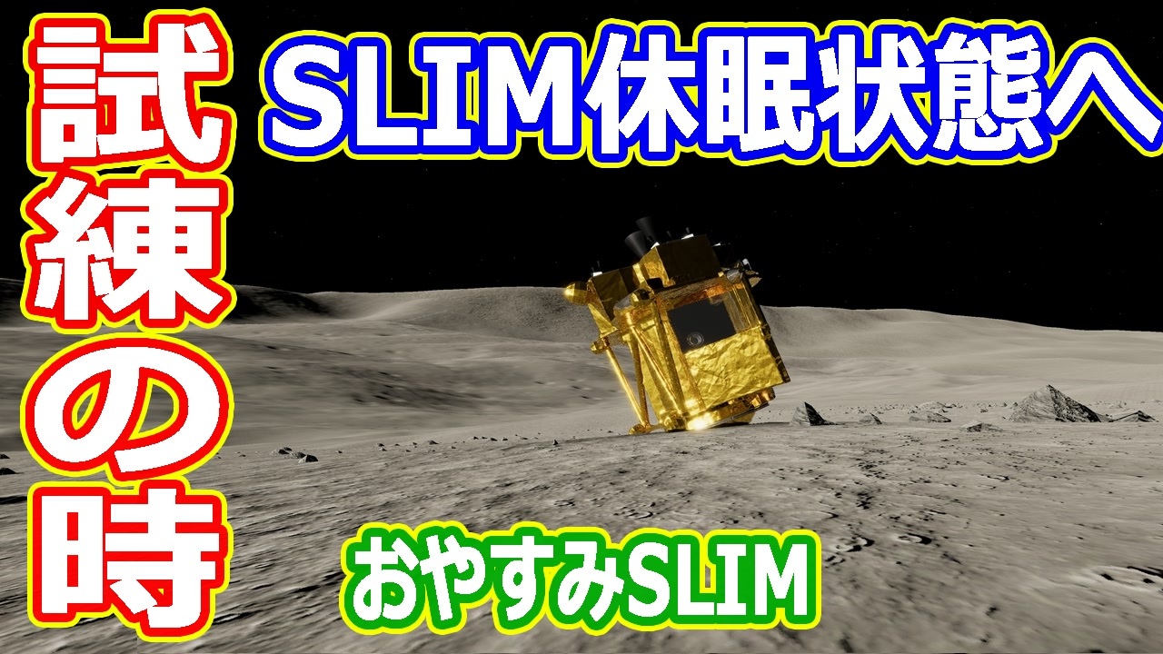 SLIMが夜に備えて休眠状態に入りました<br>元々、夜を越える設計になってないSLIMには厳しい夜になります<br>なぜ夜を越えられないのか簡単に解説します<br><br>【欲しいものリスト】<br><a href="https://www.amazon.jp/hz/wishlist/ls/30HG3KS6HM6G?ref_=wl_share" target="_blank" rel="noopener nofollow">https://www.amazon.jp/hz/wishlist/ls/30HG3KS6HM6G?ref_=wl_share</a><br>【いちおし宇宙系】<br>・アマゾンリンク<br><a href="https://amzn.to/2S8xjpH" target="_blank" rel="noopener nofollow">https://amzn.to/2S8xjpH</a><br>・国立天文台望遠鏡キット<br><a href="https://www.vixen-m.co.jp/item/71042_3.html" target="_blank" rel="noopener nofollow">https://www.vixen-m.co.jp/item/71042_3.html</a><br>・スコープテック ラプトル60 天体望遠鏡セット<br><a href="https://amzn.to/449toYG" target="_blank" rel="noopener nofollow">https://amzn.to/449toYG</a><br>・スコープテック アトラス80 天体望遠鏡セット<br><a href="https://amzn.to/3OnAbrK" target="_blank" rel="noopener nofollow">https://amzn.to/3OnAbrK</a><br>・ナシカ光学10倍双眼鏡10×21 UC-MC<br><a href="https://amzn.to/3OvB4P9" target="_blank" rel="noopener nofollow">https://amzn.to/3OvB4P9</a><br>・ニコン 双眼鏡 PROSTAFF P7 8x42 <br><a href="https://amzn.to/3QzzvCA" target="_blank" rel="noopener nofollow">https://amzn.to/3QzzvCA</a><br>・ビジュアル天文学史 : 古代から現代まで101の発明発見と挑戦<br><a href="https://amzn.to/446rqZh" target="_blank" rel="noopener nofollow">https://amzn.to/446rqZh</a><br><br><br>へえ~と思ったらチャンネル登録と高評価をお願います<br>ツイッターでは、たまに宇宙ネタをつぶやいています<br><br>◆チャンネル登録はこちら<br><a href="http://www.youtube.com/channel/UChOv-TZWg3X4MDjFUF8CfQg?sub_confirmation=1" target="_blank" rel="noopener nofollow">http://www.youtube.com/channel/UChOv-TZWg3X4MDjFUF8CfQg?sub_confirmation=1</a><br>◆サブチャンネル<br><a href="http://www.youtube.com/channel/UCpQEOLtOpmXUwslvgi93yQw?sub_confirmation=1" target="_blank" rel="noopener nofollow">http://www.youtube.com/channel/UCpQEOLtOpmXUwslvgi93yQw?sub_confirmation=1</a><br>◆twitterはこちら<br><a href="https://twitter.com/skysanpei" target="_blank" rel="noopener nofollow">https://twitter.com/skysanpei</a>