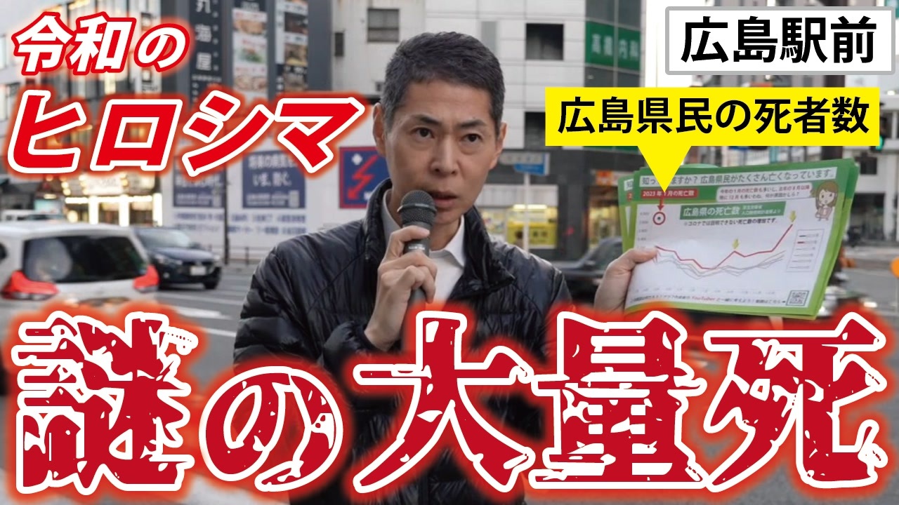 令和5年12月9日 広島駅前にて 活動の記録です。<br><br>―――――――――――――――――――――――――――――――<br><br>❑「世界を欺いた〇〇〇〇〇〇〇」(宝島社新書)<br><a href="https://amzn.to/3ymDfgr" target="_blank" rel="noopener nofollow">https://amzn.to/3ymDfgr</a><br>鳥集徹(著) 闇のダディ(著) 藤江成光(著)←私<br><br>―――――――――――――――――――――――――――――――<br><br>❑藤江の「真の」日本人増加計画(ニコニコチャンネル+)<br><a href="https://nicochannel.jp/fujie/" target="_blank" rel="noopener nofollow">https://nicochannel.jp/fujie/</a><br>※毎月第3土曜日の夜、定例ライブ配信!<br><br><br>❏藤江の活動を支援していただける方向け<br>【藤江支援口座】のご案内<br>住信SBIネット銀行 ミカン支店(店番号103)<br>口座番号 3107694<br>口座名義 フジエ マサミツ<br><br>――――――――――――――――――――――――――――――<br><br>日本の人口増加を目指す男、藤江です!【メインチャンネル】<br><a href="https://www.youtube.com/c/JINKOUZOUKA/" target="_blank" rel="noopener nofollow">https://www.youtube.com/c/JINKOUZOUKA/</a><br><br>地域と日本の存続のためニ!【藤江2ndチャンネル】<br><a href="https://www.youtube.com/channel/UCfBh4rv5UT7D-qR6KsoZrsA" target="_blank" rel="noopener nofollow">https://www.youtube.com/channel/UCfBh4rv5UT7D-qR6KsoZrsA</a><br><br>今こそ!三千年の底力【藤江3rdチャンネル】<br><a href="https://www.youtube.com/channel/UC5Yrsm8-X8nZj4uKgvE7CBw" target="_blank" rel="noopener nofollow">https://www.youtube.com/channel/UC5Yrsm8-X8nZj4uKgvE7CBw</a><br><br>四海兄弟【藤江4thチャンネル】<br><a href="https://www.youtube.com/channel/UCiyJNO57quj80Ysy7nOABvA" target="_blank" rel="noopener nofollow">https://www.youtube.com/channel/UCiyJNO57quj80Ysy7nOABvA</a><br><br>五穀豊穣【藤江5thチャンネル】<br><a href="https://www.youtube.com/channel/UCptMJCoKYghfew5tDzoEqHQ" target="_blank" rel="noopener nofollow">https://www.youtube.com/channel/UCptMJCoKYghfew5tDzoEqHQ</a><br><br>六根清浄【藤江6thチャンネル】<br><a href="https://www.youtube.com/@FUJIE6th" target="_blank" rel="noopener nofollow">https://www.youtube.com/@FUJIE6th</a><br><br>七生報国【藤江7thチャンネル】<br><a href="https://www.youtube.com/@fujie7th" target="_blank" rel="noopener nofollow">https://www.youtube.com/@fujie7th</a><br><br>藤江のX(Twitter)<br><a href="https://twitter.com/JINKOUZOUKA_jp" target="_blank" rel="noopener nofollow">https://twitter.com/JINKOUZOUKA_jp</a><br><br>藤江のニコニコ動画<br><a href="https://www.nicovideo.jp/user/5457748" target="_blank" rel="noopener nofollow">https://www.nicovideo.jp/user/5457748</a>