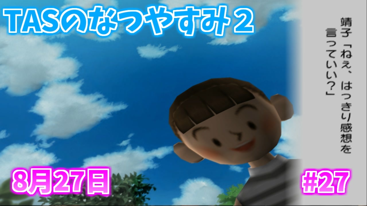 そろそろ終活だなぁ<br>ぼくのなつやすみ2<br>ツールアシストされながら攻略するだけ動画です<br>8月27日<br />動画に「いいね!」「マイリスト登録」よろしくお願いします。<br><br>・おすすめ<br>[TAS]Grand Theft Auto 3 Part1→<a href="https://www.nicovideo.jp/watch/sm14718961" class="watch">sm14718961</a><br>[TAS]MaxPayne デッドターゲット Part1→<a href="https://www.nicovideo.jp/watch/sm15093299" class="watch">sm15093299</a><br>[TAS]michigan Part1→<a href="https://www.nicovideo.jp/watch/sm18393230" class="watch">sm18393230</a><br><br>サポート頂けると励みになります<br>魔界塔士のサポーターになる→<a href="https://creator-support.nicovideo.jp/registration/15153622" target="_blank" rel="noopener nofollow">https://creator-support.nicovideo.jp/registration/15153622</a><br><br>TAS動画まとめ→<a href="https://koeiprogenitor.com/tas/matome/" target="_blank" rel="noopener nofollow">https://koeiprogenitor.com/tas/matome/</a><br>つべ→<a href="https://www.youtube.com/user/koeiprogenitor1/" target="_blank" rel="noopener nofollow">https://www.youtube.com/user/koeiprogenitor1/</a><br>インスタ→<a href="https://www.instagram.com/makaitoshi" target="_blank" rel="noopener nofollow">https://www.instagram.com/makaitoshi</a><br><br>本編→シリーズ一覧見てね<br>