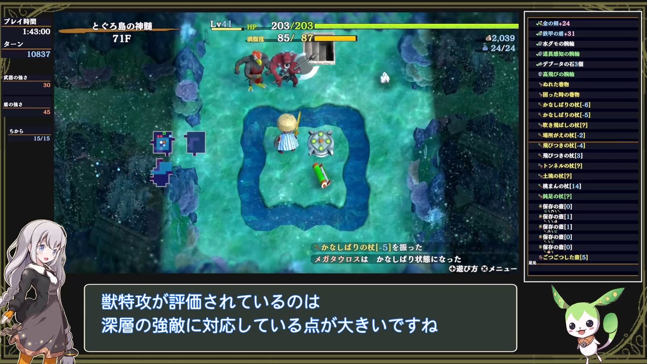 風来のシレン6 とぐろ島探検録<br>とぐろ島の神髄のTA/RTA動画です。<br><br>PART1 <a href="https://www.nicovideo.jp/watch/sm43365077" class="watch">sm43365077</a><br>PART2 <a href="https://www.nicovideo.jp/watch/sm43365096" class="watch">sm43365096</a><br>PART3 <a href="https://www.nicovideo.jp/watch/sm43365118" class="watch">sm43365118</a><br>PART4 <a href="https://www.nicovideo.jp/watch/sm43365195" class="watch">sm43365195</a><br>PART5 ここ<br>