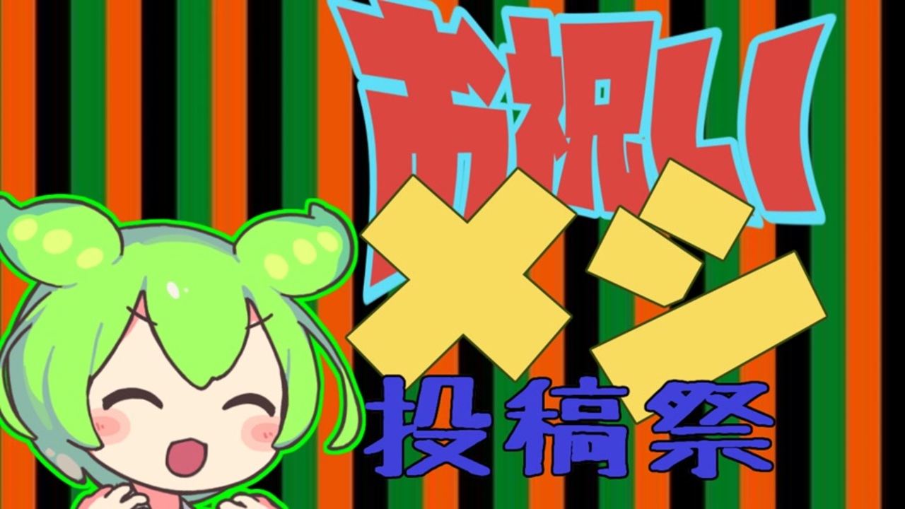 <span style="font-size: 16px;">お祝いメシ投稿祭<br>6月14日(金)~6月23日(日)<br>『お祝いメシ』を食べる動画を投稿すること<br>自作料理、外食、既製品いずれでも可<br><br>ルール:<br>・期間内に『</span><span style="font-size: 16px;"><strong>お祝いメシ</strong></span><span style="font-size: 16px;">』を食べる動画をニコニコ動画に投稿すること(飲み物も可)<br>・本動画の親作品登録<br>・タグ『</span><span style="font-size: 16px;"><strong>お祝いメシ投稿祭</strong></span><span style="font-size: 16px;">』をつけること<br>・動画内で、それがなぜ『</span><span style="font-size: 16px;"><strong>お祝いメシ</strong></span><span style="font-size: 16px;">』なのかを説明すること<br><br>新人応援キャンペーン:<br>新人(下記に記載)の投稿動画に<br>①5000ポイント分のニコニ広告<br>②ツイッターでの紹介</span><br>新人とは:<br>本企画参加動画の投稿時点から過去1年以内に、料理、グルメ動画を投稿していない方を新人とする<br><br><span style="color: #ff0000;"><strong>禁止事項:<br>・食べ物でないものを食べる<br>・極度に不衛生、不安全な行為<br>・違法行為<br>・食べ物を粗末に扱う行為</strong></span><br>(なお、文化再現の都合など、正当な理由で上記に抵触する場合、<br>十分な説明があれば、投稿者の自己責任において参加可能とする。<br><span style="color: #ff0000;"><strong>ただし危険行為を推奨するわけではありません</strong></span>)<br><br>Q:お祝いメシとは?<br>A:投稿者がお祝いメシだと言い張ればよい<br><br>Q:テーマのねらいは?<br>A:知的、文化的な料理動画が見たい<br> 誰でも参加できそう<br> 差別化が容易そう<br> 大喜利がしやすそう<br><br><span style="font-size: 18px;"><strong>企画ロゴ<br><a href="https://commons.nicovideo.jp/works/nc350071" target="_blank" rel="noopener nofollow">https://commons.nicovideo.jp/works/nc350071</a></strong></span><br><br>VOICEPEAK:ずんだもん<br>BGMはMusmus<br><br><a target="_blank" href="https://qa.nicovideo.jp/faq/show/19424?site_domain=default" style="font-size: 13px;color: #657586; text-decoration: underline; line-height: 1.4">この動画は投稿者によって修正されました</a>