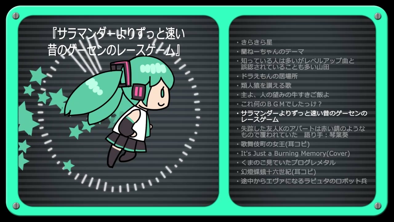 | 番号 | 総合順位 | ポイント | ジャンル順位 | カテゴリ | 再生順位 | 再生数 | コメント順位 | コメント数 | マイリスト順位 | マイリスト数 | いいね順位 | いいね数 |