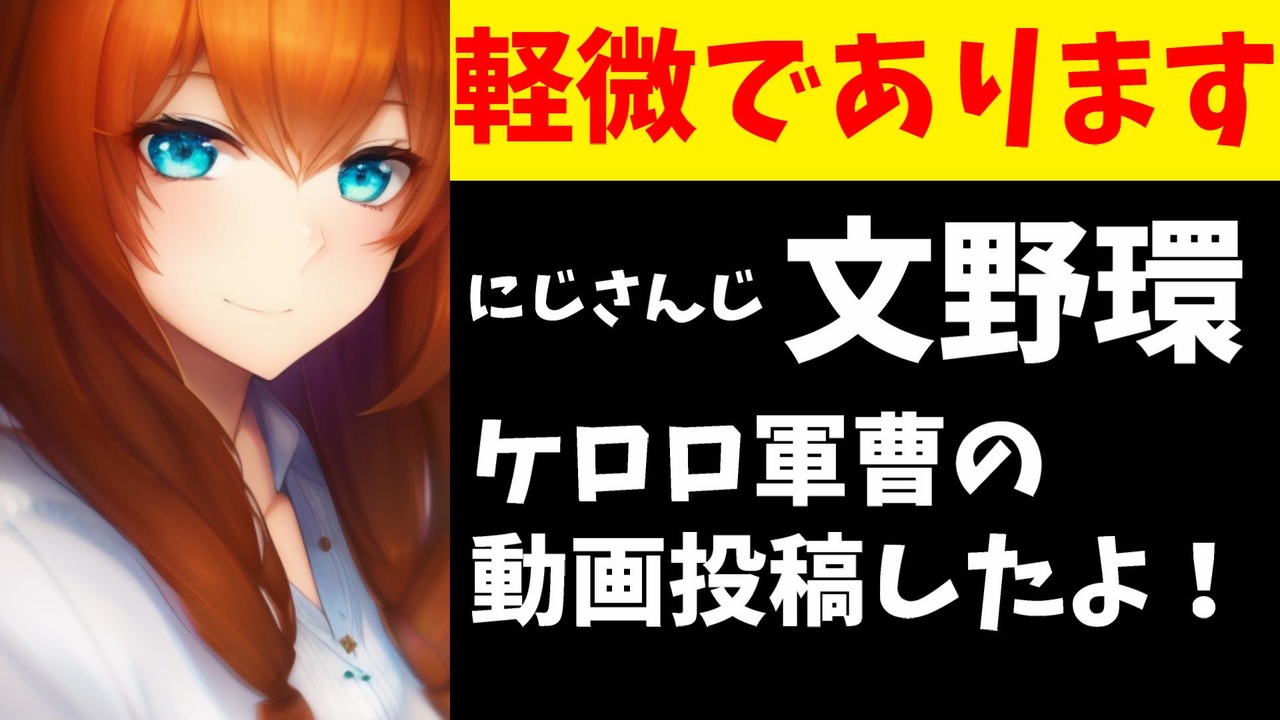 2024年2月2日、にじさんじの野良猫こと文野環さんがケロロ軍曹の歌動画を投稿されました。<br><br>引用<br>「ケロッ!とマーチ」歌ってみた【にじさんじ/剣持刀也/ギルザレン三世/周央サンゴ/文野環】<br><a href="https://youtu.be/YsWZ1G5K6N8?si=qKzhkhCmWMM22hw0" target="_blank" rel="noopener nofollow">https://youtu.be/YsWZ1G5K6N8?si=qKzhkhCmWMM22hw0</a><br><br>Youtube <a href="https://www.youtube.com/@V_Virgin_Mary" target="_blank" rel="noopener nofollow">https://www.youtube.com/@V_Virgin_Mary</a><br>twitter <a href="https://twitter.com/V_Virgin_Mary" target="_blank" rel="noopener nofollow">https://twitter.com/V_Virgin_Mary</a><br><br>使用素材<br>高品質なフリー動画素材 - Pixabay <a href="https://pixabay.com/ja/videos" target="_blank" rel="noopener nofollow">https://pixabay.com/ja/videos</a>
