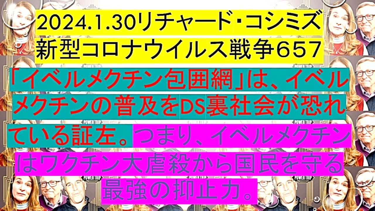 <span style="color: #cc4125;"><strong>「 テーマ : 新型コロナウイルス戦争 657 」</strong></span><br><br><span style="color: #ff0000;"><strong>「『 イベルメクチン包囲網 』は、『 イベルメクチンの普及 』を『 DEEP STATE 裏社会 』が<br> 恐れている『 証左 』。つまり、『 イベルメクチン 』は、『 ワクチン大虐殺 』から『 国民 』<br> を守る『 最強の抑止力 』」</strong></span><br><br> <span style="color: #0000ff;"><strong>◐『 イベルメクチン・アビガン服用後 』の体験談等をお寄せ下さい。RK</strong></span><br> <span style="color: #0000ff;"><strong>E-mail : richardkoshimizu@gmail.com</strong></span><br><br> <span style="color: #38761d;"><strong>◐ リチャード・コシミズ・チャンネル『⦅ ニコニコ チャンネル ⦆』</strong></span><br> <span style="color: #38761d;"><strong><a href="https://ch.nicovideo.jp/richardkoshimizu" target="_blank" rel="noopener nofollow">https://ch.nicovideo.jp/richardkoshimizu</a><br><br> ◐ リチャード・コシミズ『 ニコニコ生放送⦅ LIVE ⦆』</strong></span><br> <span style="color: #38761d;"><strong><a href="https://www.nicovideo.jp/user/120930363/live_programs" target="_blank" rel="noopener nofollow">https://www.nicovideo.jp/user/120930363/live_programs</a><br><br> ◐ リチャード・コシミズ『 Rumble 』公式 動画ギャラリー</strong></span><br> <span style="color: #38761d;"><strong><a href="https://rumble.com/user/richardkoshimizu" target="_blank" rel="noopener nofollow">https://rumble.com/user/richardkoshimizu</a></strong></span><br><br> <span style="color: #38761d;"><strong>◐ リチャード・コシミズ『 ニコニコ動画⦅ 全動画 ⦆』公式 動画ギャラリー</strong></span><br> <span style="color: #38761d;"><strong><a href="https://www.nicovideo.jp/user/121957117/video" target="_blank" rel="noopener nofollow">https://www.nicovideo.jp/user/121957117/video</a></strong></span><br><br>