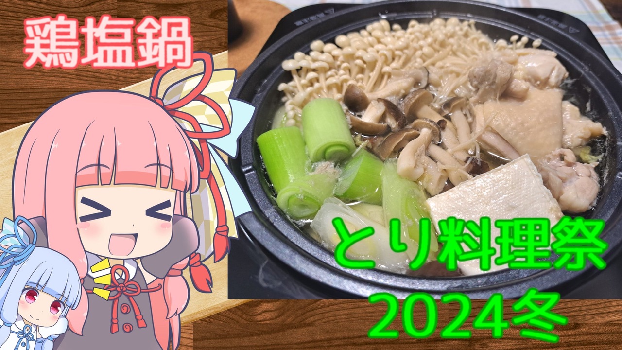 とり料理祭2024冬、4日間走り切りました!!<br><br><br>【今回参加させていただいた投稿祭】<br><span style="font-size: 18px;"><strong><u>とり料理祭2024冬</u></strong></span><br><br>主催…ちきんすてーき様 <a href="https://www.nicovideo.jp/user/311366" target="_blank" rel="noopener">user/311366</a><br>告知動画…<a href="https://www.nicovideo.jp/watch/sm42914188" class="watch">sm42914188</a><br><br><br />【X(旧Twitter)】<br><a href="https://twitter.com/hemiola1124" target="_blank" rel="noopener nofollow">https://twitter.com/hemiola1124</a><br><br>【利用ソフト 】<br>aviutl<br>A.I.VOICE 琴葉茜・葵<br><br>【利用させていただいた立ち絵】<br>EST様作 紙人形風琴葉茜・葵立ち絵 v2.2 <a href="https://seiga.nicovideo.jp/seiga/im7816324" target="_blank" rel="noopener">im7816324</a><br><br>【利用させていただいた楽曲】<br>かずち様作 青空空港 <a href="https://commons.nicovideo.jp/works/nc124366" target="_blank" rel="noopener">nc124366</a>