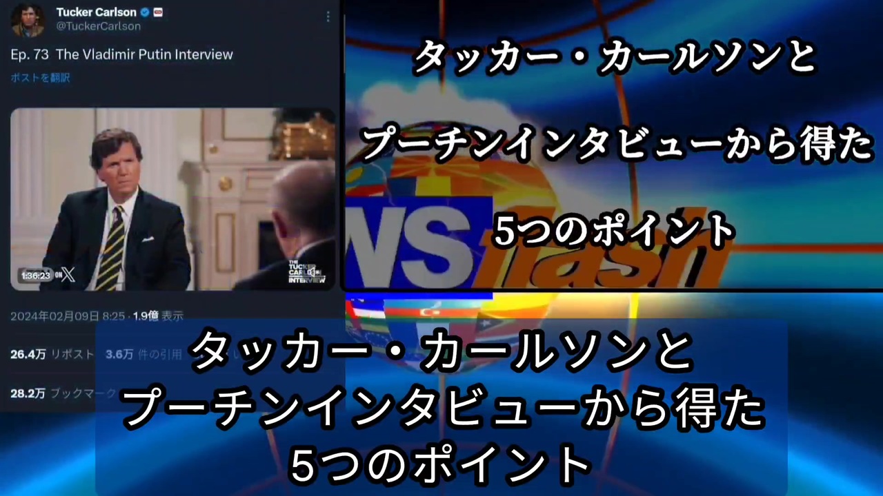 タッカー・カールソンがプーチンインタビューから得た5つのポイント<br><a href="https://x.gd/hdj64" target="_blank" rel="noopener nofollow">https://x.gd/hdj64</a><br><br><br>※個人的には違ってほしい⬇<br>タッカー・カールソンによるプーチンのインタビューのX上での配信の大バズリは、支配層の計画<br><a href="https://x.gd/dgU1t" target="_blank" rel="noopener nofollow">https://x.gd/dgU1t</a><br><br><br>タッカー・カールソン プーチン大統領 インタビュー ウクライナ戦争 ウクライナ ロシア CIA プロパガンダ メディア 偏向報道 真実歪曲 印象操作 メディアコントロール イーロン・マスク X Twitter クリミア ボリス・ジョンソン 西側諸国 NATO <br><br><br />著作権、肖像権に配慮して作成しております。<br><br>◆気になったニュースの台本!?<br>メモ代わりに作った台本をそのままあげてます<br><a href="https://keiichiro8140.hatenablog.com/." target="_blank" rel="noopener nofollow">https://keiichiro8140.hatenablog.com/.</a><br><br><br>ここからはシリーズ紹介<br><br><br>◆ ワクチン解毒・デトックス<br><a href="https://x.gd/fZweg" target="_blank" rel="noopener nofollow">https://x.gd/fZweg</a><br><br>◆ウイリアム・マキス博士のがん治療(イベルメクチン・フェンベンダゾール等)<br><a href="https://x.gd/AtFYS" target="_blank" rel="noopener nofollow">https://x.gd/AtFYS</a><br><br>◆予防接種健康被害救済制度<br><a href="https://x.gd/0xK9x" target="_blank" rel="noopener nofollow">https://x.gd/0xK9x</a><br><br>◆気になったニュース #1501~<br><br>◆ 【ショートver】気になったニュース<br><a href="https://x.gd/7MxXC" target="_blank" rel="noopener nofollow">https://x.gd/7MxXC</a><br><br>◆ 気になったニュース #1001~<br><a href="https://x.gd/Lp8gv" target="_blank" rel="noopener nofollow">https://x.gd/Lp8gv</a><br><br>◆ 気になったニュース #501~<br><a href="https://x.gd/EmbS4" target="_blank" rel="noopener nofollow">https://x.gd/EmbS4</a><br><br>◆ 気になったニュース #1~#500<br><a href="https://x.gd/uPhNb" target="_blank" rel="noopener nofollow">https://x.gd/uPhNb</a><br><br>◆ X(旧Twitter)・テレグラムで気になった情報<br><a href="https://x.gd/YG6FT" target="_blank" rel="noopener nofollow">https://x.gd/YG6FT</a><br><br>◆ 日比谷5万人パレードデ⚪生放送アーカイブ動画<br><a href="https://x.gd/3CHJv" target="_blank" rel="noopener nofollow">https://x.gd/3CHJv</a><br><br>◆日比谷5万人パレード⚪モのマイリスト作ってみました<br><a href="https://nico.ms/mylist/76828848?ref=sp_other" target="_blank" rel="noopener nofollow">https://nico.ms/mylist/76828848?ref=sp_other</a><br><br>◆3.30 令和の百姓⚪⚪<br><a href="https://www.nicovideo.jp/series/511791?ref=garage_share_other" target="_blank" rel="noopener nofollow">https://www.nicovideo.jp/series/511791?ref=garage_share_other</a><br><br>◆ 及川幸久さんの【XNEWS】シリーズ<br><a href="https://x.gd/3k78K" target="_blank" rel="noopener nofollow">https://x.gd/3k78K</a><br><br>◆これまでの動画<a href="https://x.gd/sPXoJ" target="_blank" rel="noopener nofollow">https://x.gd/sPXoJ</a><br><br>◆もしも(BAN)の時のためのマイリンク集<a href="https://lit.link/K-16_News44" target="_blank" rel="noopener nofollow">https://lit.link/K-16_News44</a><br><br>