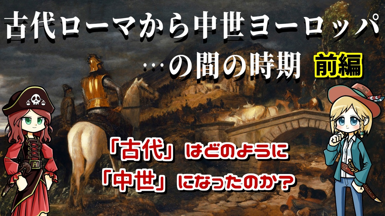 古代と中世ではなんかずいぶん世界観が変わっちゃったイメージありますよね。<br><br>でも、中世ヨーロッパとやらもしっかりと古代ローマの社会が生きているのです。ってかローマ帝国なくして中世ヨーロッパ無しです。はい。<br><br>今回はなんかそのへんフワッとしがちな古代末期の時期をお話します。<br>※まだローマは滅びません。<br><br>限定動画ありの『モンド・ヒストリカの離宮』もよろしく↓↓↓<br><a href="https://ch.nicovideo.jp/mond-historica" target="_blank" rel="noopener nofollow">https://ch.nicovideo.jp/mond-historica</a><br><br>今回の参考文献:<br>マガリ・クメール/ブリューノ・デュメジル(2019)『ヨーロッパとゲルマン部族国家』大月康弘/小澤雄太郎訳 白水社<br>ベルトラン・ランソン(2013)『古代末期 ━ローマ世界の変容』大清水裕/瀧本みわ訳 白水社<br>ピーター・ブラウン(2016)『古代末期の世界』宮島直機訳 刀水書房 <br>池谷文夫 (2019)『神聖ローマ帝国 ドイツ王が支配した帝国』刀水書房 <br>林俊雄(2017)『スキタイと匈奴 遊牧の文明』講談社 <br><br>その他 Wikipediaなど<br />━━━━━━━━━━━━━━━━━━━━━<br><br>この動画はクリエイティブ・コモンズ継承(CC-BY-SA)ライセンスの素材を使用して制作しています。(<a href="https://creativecommons.org/licenses/by-sa/4.0/)" target="_blank" rel="noopener nofollow">https://creativecommons.org/licenses/by-sa/4.0/)</a><br>規約に基づき、この動画もCC-BY-SA 4.0 のもとで公開します。<br><br>投稿者共通情報☆彡<br><br>BGM, SE:ニコニ・コモンズ様<br><a href="http://commons.nicovideo.jp/" target="_blank" rel="noopener nofollow">http://commons.nicovideo.jp/</a><br>魔王魂様<br><a href="https://maoudamashii.jokersounds.com/" target="_blank" rel="noopener nofollow">https://maoudamashii.jokersounds.com/</a><br>Audiostock様<br><a href="https://audiostock.jp/" target="_blank" rel="noopener nofollow">https://audiostock.jp/</a><br><br>立ち絵 霊夢・魔理沙(黒子式):nicotalk様<br><a href="http://www.nicotalk.com/charasozai.html" target="_blank" rel="noopener nofollow">http://www.nicotalk.com/charasozai.html</a><br><br>立ち絵 パトラ、マリー、アン、メアリ:ライフライフ様<br><a href="https://0801lifelife.tumblr.com/" target="_blank" rel="noopener nofollow">https://0801lifelife.tumblr.com/</a><br><br>使用ツール1:ゆっくりムービーメーカー4<br><a href="https://manjubox.net/ymm4/" target="_blank" rel="noopener nofollow">https://manjubox.net/ymm4/</a><br><br>使用ツール2:AviUtl<br><a href="http://spring-fragrance.mints.ne.jp/aviutl/" target="_blank" rel="noopener nofollow">http://spring-fragrance.mints.ne.jp/aviutl/</a><br><br>各時代の地図 : World History Maps & Timelines <br><a href="http://geacron.com/home-en/" target="_blank" rel="noopener nofollow">http://geacron.com/home-en/</a><br><br>ゆっくりボイスについて:AquesTalkライセンス取得済み<br><br>キャラクターボイス<br>アン・ボニー:羽ノ華(A.I.VOICE)<br>メアリ・リード:琴葉 葵(A.I.VOICE)<br>クレオパトラ:結月ゆかり(VOICEROID2)<br>マリー‐アントワネット:東北きりたん (VOICEROID EX)<br>その他キャラ:青山龍星(A.I.VOICE)、伊織弓鶴(A.I.VOICE2)、栗田まろん(A.I.VOICE)、宮舞モカ(VOICEPEAK)、フリモメン(VOICEPEAK)<br><br><br><br>その他フリー素材ご提供元の皆様に圧倒的感謝<br>