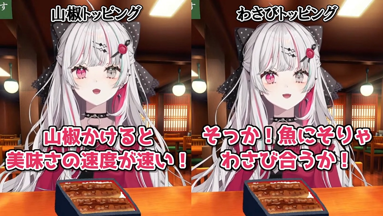 うまそうに食べてる石神かわいいわ<br><br>本家参考動画<br>・石神のぞみ<br>うな重初見プレイ(再チャレンジ)【石神のぞみ/にじさんじ所属】<br><a href="https://youtu.be/tlaOVmT7k4Q" target="_blank" rel="noopener nofollow">https://youtu.be/tlaOVmT7k4Q</a><br><br>参考元チャンネル&X(Twitter)<br>・石神のぞみ<br><a href="https://www.youtube.com/@IshigamiNozomi" target="_blank" rel="noopener nofollow">https://www.youtube.com/@IshigamiNozomi</a><br><a href="https://twitter.com/I_Nozomi_" target="_blank" rel="noopener nofollow">https://twitter.com/I_Nozomi_</a><br><br>ニコニコのダイコンマンリスト<br>「バーチャルYouTuberシリーズ」↓<br><a href="https://www.nicovideo.jp/mylist/62551838" target="_blank" rel="noopener">mylist/62551838</a><br>「バーチャルYouTuberシリーズ2」↓<br><a href="https://www.nicovideo.jp/mylist/67858437" target="_blank" rel="noopener">mylist/67858437</a><br>「バーチャルYouTuberシリーズ3」↓<br><a href="https://www.nicovideo.jp/mylist/71340675" target="_blank" rel="noopener">mylist/71340675</a><br>「バーチャルYouTuberシリーズ4」↓<br><a href="https://www.nicovideo.jp/mylist/73995264" target="_blank" rel="noopener">mylist/73995264</a><br><br>ダイコンマンのTwitter<br><a href="https://twitter.com/Daikon_Man_V" target="_blank" rel="noopener nofollow">https://twitter.com/Daikon_Man_V</a>