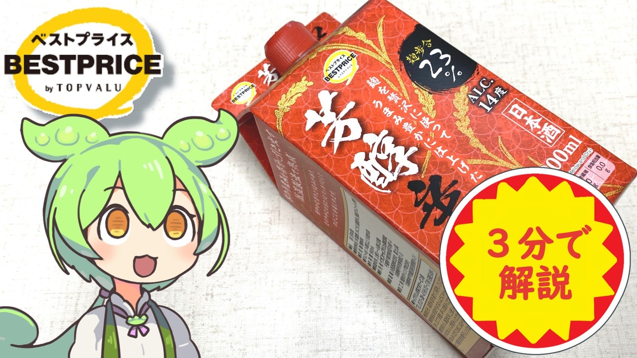 トップバリュの日本酒です。<br><br><br><br>【関連動画】<br>ラ・ムーの「もやし鍋のつゆ」と「売り切れ御免 カナダ産 三元豚小間切れ(メガ)」<br><a href="https://www.nicovideo.jp/watch/sm43327661" target="_blank" rel="noopener nofollow">https://www.nicovideo.jp/watch/sm43327661</a><br><br>【参考】<br>芳醇辛口(トップバリュ)<br><a href="https://www.topvalu.net/items/detail/4549414518412/" target="_blank" rel="noopener nofollow">https://www.topvalu.net/items/detail/4549414518412/</a><br>ニュージーランド産の生乳を使用バニラアイスクリーム(トップバリュ)<br><a href="https://www.topvalu.net/items/detail/4549414142952/" target="_blank" rel="noopener nofollow">https://www.topvalu.net/items/detail/4549414142952/</a><br>「醸造アルコール」とは?日本酒に醸造アルコールが必要な理由(朝日酒造株式会社)<br><a href="https://magazine.asahi-shuzo.co.jp/know/315" target="_blank" rel="noopener nofollow">https://magazine.asahi-shuzo.co.jp/know/315</a><br>日本酒の原料を総まとめ! - 米、米麹、水から醸造アルコールなど副原料・添加物まで(SAKE Street)<br><a href="https://sakestreet.com/ja/media/learn-ingredients-of-sake" target="_blank" rel="noopener nofollow">https://sakestreet.com/ja/media/learn-ingredients-of-sake</a><br>日本酒に含まれる代表的な有機酸5つはどんな味?─ 味わいを左右する酸と温度の関係(SAKETIMES)<br><a href="https://jp.sake-times.com/think/study/sake_g_sour-taste-of-sake" target="_blank" rel="noopener nofollow">https://jp.sake-times.com/think/study/sake_g_sour-taste-of-sake</a><br>清酒を知る - さざまな酒のタイプ(月桂冠)<br><a href="https://www.gekkeikan.co.jp/enjoy/sake/type/type01.html" target="_blank" rel="noopener nofollow">https://www.gekkeikan.co.jp/enjoy/sake/type/type01.html</a><br>日本酒の種類が分かる!純米酒と吟醸酒、本醸造酒の違いを知ろう(酒みづき)<br><a href="https://www.sawanotsuru.co.jp/site/nihonshu-columm/knowledge/kind-of-sake/" target="_blank" rel="noopener nofollow">https://www.sawanotsuru.co.jp/site/nihonshu-columm/knowledge/kind-of-sake/</a><br>FC岐阜コラボ日本酒「躍進」、「感動」販売開始のお知らせ(FC岐阜)<br><a href="https://www.fc-gifu.com/news_information/43461.html" target="_blank" rel="noopener nofollow">https://www.fc-gifu.com/news_information/43461.html</a><br><br><br>【使用した素材】(※敬称略)<br>(合成音声)VOICEVOX/ずんだもん/四国めたん<br><a href="https://voicevox.hiroshiba.jp/" target="_blank" rel="noopener nofollow">https://voicevox.hiroshiba.jp/</a><br>(立ち絵)坂本アヒル<br><a href="https://seiga.nicovideo.jp/seiga/im10788496" target="_blank" rel="noopener">im10788496</a>/<a href="https://seiga.nicovideo.jp/seiga/im10791276" target="_blank" rel="noopener">im10791276</a><br>(楽曲)甘茶の音楽工房/「楽しい麦畑」「お城の舞踏会」<br><a href="https://amachamusic.chagasi.com/" target="_blank" rel="noopener nofollow">https://amachamusic.chagasi.com/</a>