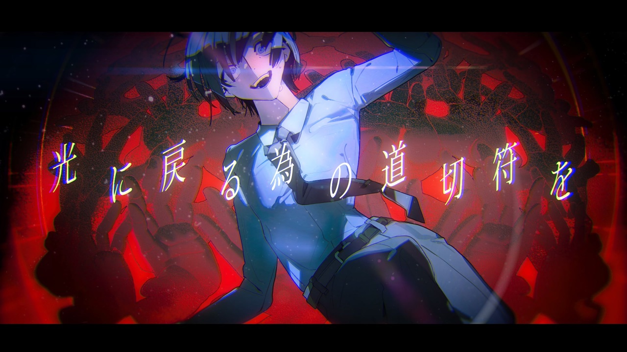 Music : 人類派<br><a href="https://twitter.com/jinruiha_towani" target="_blank" rel="noopener nofollow">https://twitter.com/jinruiha_towani</a><br><br>Illust : ヨ剤<br><a href="https://twitter.com/yo4zai" target="_blank" rel="noopener nofollow">https://twitter.com/yo4zai</a><br><br>Movie : 桜木おにおん&人類派&ヨ剤<br><a href="https://twitter.com/sakuragi_0815" target="_blank" rel="noopener nofollow">https://twitter.com/sakuragi_0815</a><br><br>Off Vocal<br><a href="https://commons.nicovideo.jp/works/nc354273" target="_blank" rel="noopener nofollow">https://commons.nicovideo.jp/works/nc354273</a> <br><br>ビルの屋上から観た。キミの非難<br>何も上手くいかない 首は血切れて<br>恩恵があるから 意図は気まぐれ<br>ボクは心做し ゴミの系列<br><br>朽ち果てたんだ。キミは。<br>ボクに救いは無いんだ。罪深いな。<br>草臥れた彼を救いたい。さて。<br>ボクの値札を貼った、光が。<br><br>天が差し出した糸の疑問符を <br>キミが泥だらけな感嘆符を <br>ボクの導き手の護身符を <br>キミの救い手の3連符を <br><br>天に登る為の希望符を <br>過去の血反吐達へ救済符を <br>ボクの精神への護身符を <br>善の救いから4連符を <br><br>コレに 登れば 望めば 求めば 救われる。<br>ボクの心にも光が宿るから。<br>救いが来る。 誰かが価値に気づく。<br>この先を見据えていたい。<br>嗚呼、遠いな。<br>どうしたら、いい?<br><br>骸の山は遠くに視えるのに。<br>人混みの中で助けを求めてる彼らが<br>這い上ってきたんだ。ボクを呪った奴らが<br>さて、キミは、この折れた翼でどうするか?<br><br>どけ!邪魔だ!許さない!<br>コレはボクの <br>ボクの ボクの ボクの ボクの<br>ボクの為の為の希望だ!<br>誰の許可を得て<br>生きている?<br>死んでいる?<br>生き返る?<br>操り人形として呪ったじゃないか!!<br>ボクだけの ボクだけの 最高の光だ!<br><br>堕ちていく様。<br>堕とされる様に。<br><br>光に帰る為の道切符を <br>認められる為の免罪符を<br>社会に乞う為の終止符を <br>呪いを解く為の終止符を <br><br>光に戻る為の道切符を <br>差し伸べたお手の消滅符を <br>ボクが堕ちる迄の休止符を <br>生命線、キミの終止符を