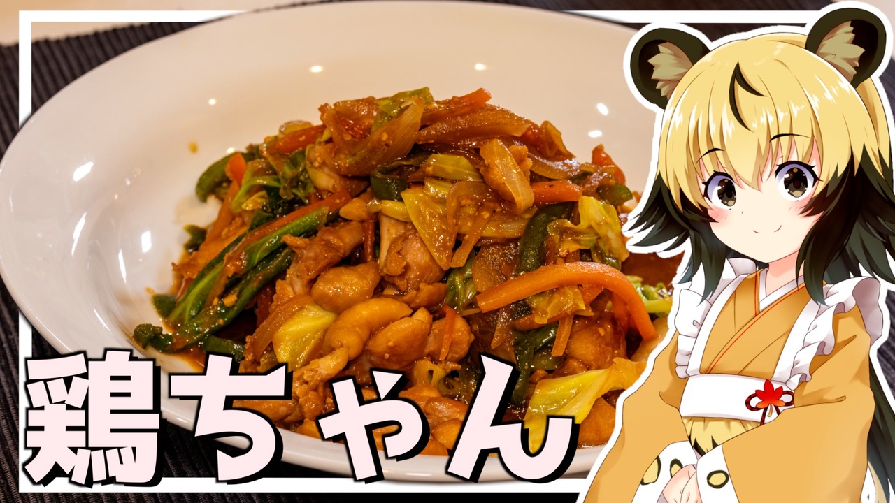 しっかり野菜が取れて、簡単で、しかもご飯にも合う<br>今回はそんな岐阜県の郷土料理「鶏ちゃん」を作っていきましょう!<br><br>鶏ちゃんは家庭で作られていた料理ですが、<br>お店でも出されるようになって広がったメニューです。<br>鶏肉をタレで漬け込んで、お野菜を用意すれば、簡単にできるお手頃なので、4月から始めて自炊する方にもおすすめしたいメニューですね。<br><br>つけ込み時間は30分以上であれば、1日漬けても大丈夫ですし、<br>漬けた状態で冷凍すれば、1ヶ月は持ちますよ。<br><br>■材料<br>・鶏肉(むね、ももどちらでも可)300g<br>・味噌(お好みのもので) 大さじ2〜2.5 <br>・料理酒 大さじ2<br>・醤油 大さじ1.5<br>・砂糖 小さじ1/2<br>・すりおろしニンニク 小さじ1程度<br>・キャベツ 300g(1/4玉)<br>・タマネギ 1個<br>・にんじん 80g<br>・ピーマン 2個<br><br><br>■所要時間<br>作業時間:20分程度(+漬け時間30分以上)<br><br>youtube:<a href="https://youtu.be/x4spuSapFwY" target="_blank" rel="noopener nofollow">https://youtu.be/x4spuSapFwY</a><br>twitter:@lycaon_kitchen<br><br>りおんの和風喫茶:<a href="https://www.nicovideo.jp/series/77190" target="_blank" rel="noopener">series/77190</a><br>おつかれごはん:<a href="https://www.nicovideo.jp/series/155690" target="_blank" rel="noopener">series/155690</a><br>手作り和菓子でちょっとひとやすみしませんか?:<a href="https://www.nicovideo.jp/series/155691" target="_blank" rel="noopener">series/155691</a><br><br>立ち絵:星華 彩二魔 様<br>イラスト:AWD kitchen<br>音源:DOVA-SYNDROME<br>音声:AI.VOICE 紲星あかり+ exVOICE
