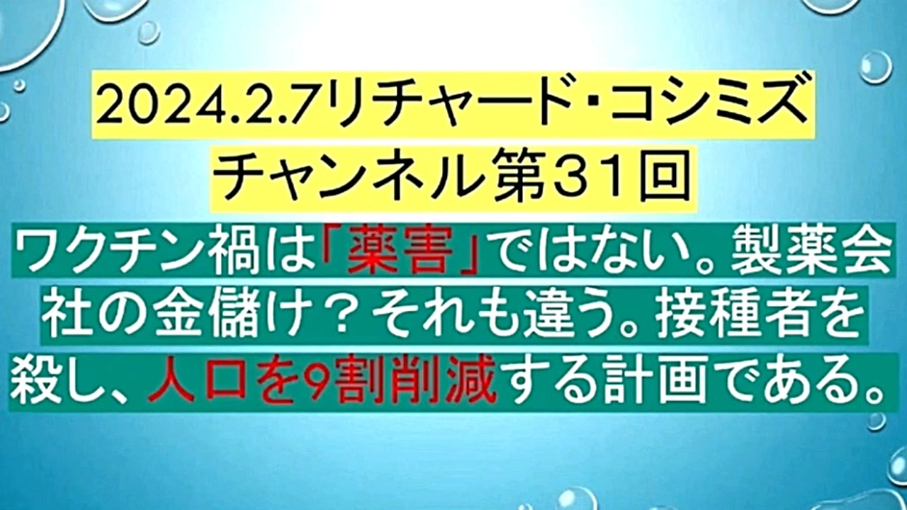 <span style="color: #ff0000;"><strong>「『 ワクチン禍 』は『 薬害 』ではない。『 製薬会社の金儲け 』? それも違う。『 接種者を殺し 』、<br> 『 人口を9割削減 』する計画である 」</strong></span><br><br><span style="color: #38761d;"><strong> ◐ リチャード・コシミズ・チャンネル⦅ ニコニコ チャンネル ⦆</strong></span><br> <span style="color: #38761d;"><strong><a href="https://ch.nicovideo.jp/richardkoshimizu" target="_blank" rel="noopener nofollow">https://ch.nicovideo.jp/richardkoshimizu</a><br><br> ◐ リチャード・コシミズ『 ニコニコ生放送⦅ LIVE ⦆』</strong></span> <br> <span style="color: #38761d;"><strong><a href="https://www.nicovideo.jp/user/120930363/live_programs" target="_blank" rel="noopener nofollow">https://www.nicovideo.jp/user/120930363/live_programs</a><br><br> ◐ リチャード・コシミズ『 Rumble 』公式 動画ギャラリー</strong></span><br> <span style="color: #38761d;"><strong><a href="https://rumble.com/user/richardkoshimizu" target="_blank" rel="noopener nofollow">https://rumble.com/user/richardkoshimizu</a><br><br> ◐ リチャード・コシミズ『 ニコニコ動画⦅ 全動画 ⦆』公式 動画ギャラリー</strong></span><br> <span style="color: #38761d;"><strong><a href="https://www.nicovideo.jp/user/121957117/video" target="_blank" rel="noopener nofollow">https://www.nicovideo.jp/user/121957117/video</a></strong></span><br> <br><span style="color: #38761d;"><strong> ◐ リチャード・コシミズ『 ニコニコ動画⦅ 333 ~ ⦆』公式 動画ギャラリー</strong></span><br> <span style="color: #38761d;"><strong><a href="https://www.nicovideo.jp/user/121028600/video" target="_blank" rel="noopener nofollow">https://www.nicovideo.jp/user/121028600/video</a><br><br> ◐ リチャード・コシミズ『 ニコニコ動画⦅ テーマ別 ⦆』公式 動画ギャラリー</strong></span><br> <span style="color: #38761d;"><strong><a href="https://www.nicovideo.jp/user/121192513/video" target="_blank" rel="noopener nofollow">https://www.nicovideo.jp/user/121192513/video</a></strong></span><br><br>