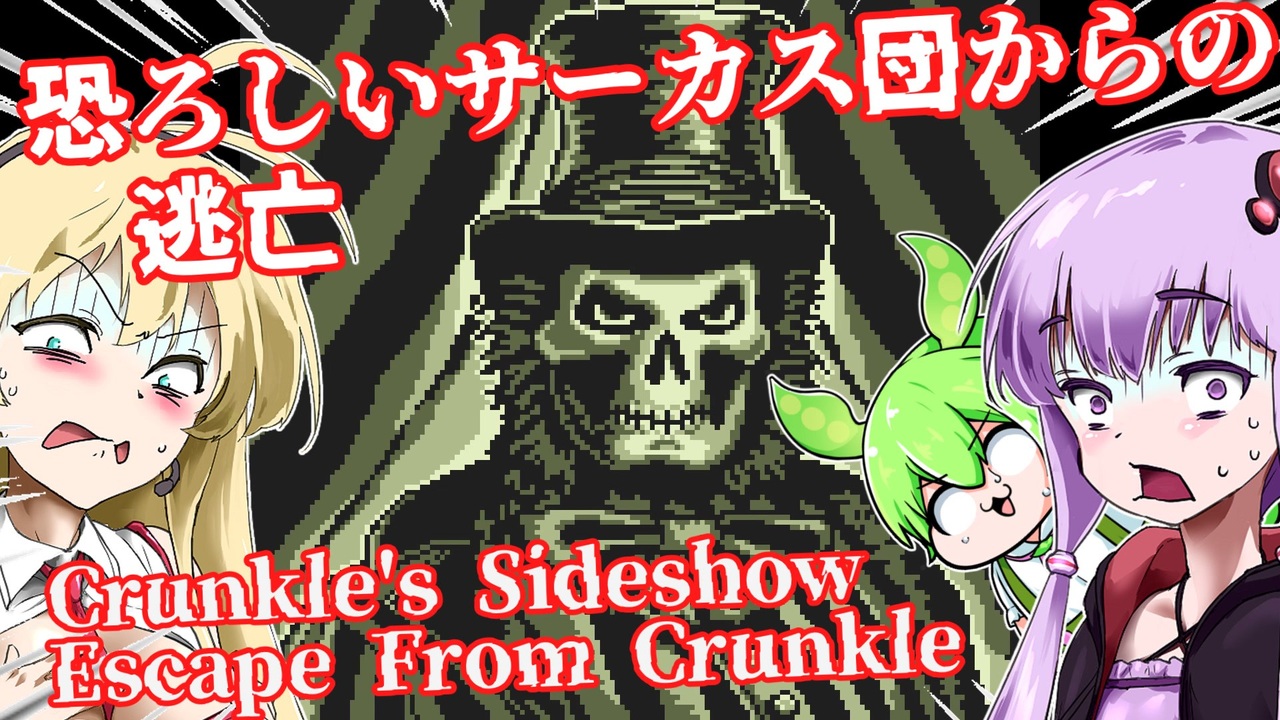 結月ゆかりさん、ずんだもん、弦巻マキちゃんが、海外のホラーアクションゲームに挑むようです。<br><br>◎あらすじ◎<br>イカれたサーカス団を運営する骸骨のクランクルから逃げだそう!<br><br>Crunkle's Sideshow<br>→1分間にできるだけ多く演目をこなそう!ミスは死に直結するぞ!<br>Escape From Crunkle<br>→クランクルがお気に入りのペットを君にけしかけてきた!<br>地下道を通ってできるだけ早く、なるべく死なないように逃亡するのだ!<br><br>※投稿者のガバ翻訳付きです。<br>配信ページ 日本語非対応<br>Crunkle's Sideshow<br><a href="https://dev-pirates.itch.io/crunkles-sideshow" target="_blank" rel="noopener nofollow">https://dev-pirates.itch.io/crunkles-sideshow</a><br>Escape From Crunkle<br><a href="https://dev-pirates.itch.io/escape-from-crunkle" target="_blank" rel="noopener nofollow">https://dev-pirates.itch.io/escape-from-crunkle</a><br><br>VOICEVOX:ずんだもん<br><a href="https://voicevox.hiroshiba.jp/" target="_blank" rel="noopener nofollow">https://voicevox.hiroshiba.jp/</a><br><br>TALQu:虚音イフ<br><a href="https://hasewoalice.wixsite.com/uroneif/talqu" target="_blank" rel="noopener nofollow">https://hasewoalice.wixsite.com/uroneif/talqu</a><br><br>COEIROINK:AI声優-青葉<br>COEIROINK:松嘩りすく<br><a href="https://coeiroink.com/" target="_blank" rel="noopener nofollow">https://coeiroink.com/</a><br><br>BGMをお借りしました。<br><a href="https://otologic.jp/" target="_blank" rel="noopener nofollow">https://otologic.jp/</a>