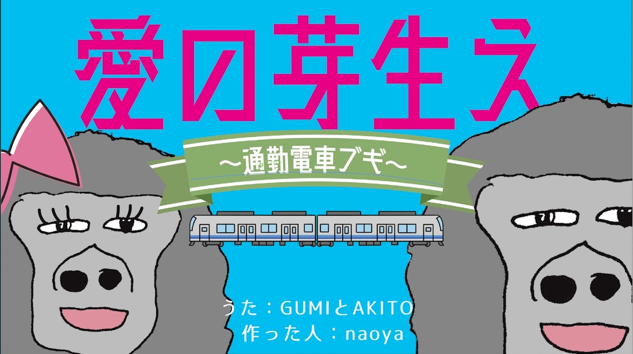 <span style="color: #ff0000; font-size: 18px;"><strong>みんな一緒にゴリラロケンロー!<br>マイリス登録お願いしますううう!!!</strong></span><br><br><ポイント><br><span style="color: #ff0000;"><strong>①コメント欄で「ゴ」と入力すると・・・!?</strong></span><br><br><span style="color: #ff0000;"><strong>②1分16秒に、ゴリラの毛の秘密が!?</strong></span><br><br><span style="color: #ff0000;"><strong>③2分10秒に、謎のニオイ・・!?</strong></span><br><br><span style="color: #ff0000;"><strong>④3分ジャストに、謎の告知(?)も!?</strong></span><br><br><span style="color: #ff0000;"><strong>⑤3分4秒でメスゴリラが衝撃の告白!</strong></span><br><br>純情ゴリラ男が通勤電車の中で恋をした?<br>すれ違う想いをのせて電車はどこへ向かう????<br><br>オスゴリラ視点のムード歌謡曲風ピアノバラードと<br>メスゴリラ視点のゴキゲンなピアノロックンロールの<br>異なる2曲を繋いだ構成でお届けします<br><br>関西弁のGUMIちゃんの歌にも注目ください!<br><br><解説><br>戦後ブギの女王として一世を風靡した笠置シヅ子さんが歌った「買物ブギ」の、アンサーソングとして作られたダウンタウンブギウギバンドの「賣物ブギ」の、オマージュソングになっています(ややこしい)<br>厳密にいうとリズムはシャッフルしてないので本来のブギの定義から外れてますが、ピアノ主体の典型的なロックンロールなので、敢えてブギという呼称を付けてます<br>ゆるキャラゴリラのチープなアニメと合わせて、手放しで楽しめる仕上がりになっています<br><span style="color: #262626; font-size: 16px;">ボカコレ視聴の合間の箸休め、お茶受け代わりに、ぜひ</span><br><br>作詞作曲編曲動画:naoya<br>ボーカル:GUMI & AKITO(VOCALOID 6)<br>コーラス:ALLEN(VOCALOID 6)<br>セリフ:みやび(AI Talk3)<br>イラスト:ONWAイラスト様 <a href="https://onwa-illust.com/" target="_blank" rel="noopener nofollow">https://onwa-illust.com/</a><br>タイトル&物語設定考案:あずき(令和jkP)様 @azuki7_music