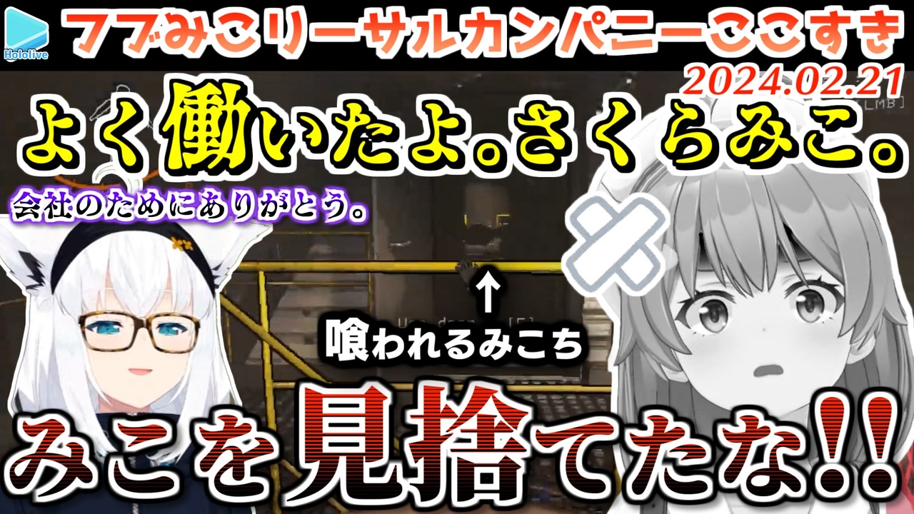 <a href="#" class="seekTime" data-seekTime="00:00" onclick="seekNicoPlayer('#00:00'); return false;">#00:00</a> クリーチャー<br><a href="#" class="seekTime" data-seekTime="01:46" onclick="seekNicoPlayer('#01:46'); return false;">#01:46</a> 触手<br><a href="#" class="seekTime" data-seekTime="02:46" onclick="seekNicoPlayer('#02:46'); return false;">#02:46</a> タレット<br><a href="#" class="seekTime" data-seekTime="03:28" onclick="seekNicoPlayer('#03:28'); return false;">#03:28</a> 落下<br><a href="#" class="seekTime" data-seekTime="03:58" onclick="seekNicoPlayer('#03:58'); return false;">#03:58</a> 音に寄ってきます<br><a href="#" class="seekTime" data-seekTime="05:52" onclick="seekNicoPlayer('#05:52'); return false;">#05:52</a> なんかでっかくてこわいやつ<br><a href="#" class="seekTime" data-seekTime="07:17" onclick="seekNicoPlayer('#07:17'); return false;">#07:17</a> 置き去り・クビ<br><br>元動画様はこちら<br>【 Lethal Company】#フブみこさん 就職しました。にぇ。【ホロライブ/白上フブキ/さくらみこ】<br><a href="https://youtu.be/EHaDFAM2sYk" target="_blank" rel="noopener nofollow">https://youtu.be/EHaDFAM2sYk</a><br><br>【Lethal Company】フブさんに誘われて恐ろしい場所で働くにぇ!???【ホロライブ/さくらみこ】<br><a href="https://youtu.be/es5jTo86Cho" target="_blank" rel="noopener nofollow">https://youtu.be/es5jTo86Cho</a><br><br>フブキCh。白上フブキ <a href="https://t.co/R9TNhC7sPO" target="_blank" rel="noopener nofollow">https://t.co/R9TNhC7sPO</a><br>Miko Ch. さくらみこ <a href="https://t.co/FM8eBkuiOO" target="_blank" rel="noopener nofollow">https://t.co/FM8eBkuiOO</a><br /><span style="color: #b7b7b7; font-size: 10px;">ホロライブ切り抜き/なめたけ <a href="https://t.co/CBwJLnYR2c" target="_blank" rel="noopener nofollow">https://t.co/CBwJLnYR2c</a></span>