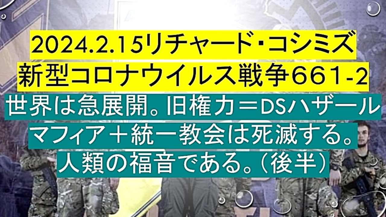 <span style="color: #cc4125;"><strong>「 テーマ : 新型コロナウイルス戦争 661-2 」</strong></span><br><br><span style="color: #ff0000;"><strong>「『 世界 』は『 急展開 』。『 旧権力 = DEEP STATE ハザールマフィア + 統一教会 』は<br> 『 死滅 』する。『 人類の福音 』である⦅ 後半 ⦆」</strong></span><br><br> <span style="color: #0000ff;"><strong>◐『 イベルメクチン・アビガン服用後 』の体験談等をお寄せ下さい。RK</strong></span><br> <span style="color: #0000ff;"><strong>E-mail : richardkoshimizu@gmail.com</strong></span><br><br> <span style="color: #38761d;"><strong>◐ リチャード・コシミズ・チャンネル『⦅ ニコニコ チャンネル ⦆』</strong></span><br> <span style="color: #38761d;"><strong><a href="https://ch.nicovideo.jp/richardkoshimizu" target="_blank" rel="noopener nofollow">https://ch.nicovideo.jp/richardkoshimizu</a><br><br> ◐ リチャード・コシミズ『 ニコニコ生放送⦅ LIVE ⦆』</strong></span><br> <span style="color: #38761d;"><strong><a href="https://www.nicovideo.jp/user/120930363/live_programs" target="_blank" rel="noopener nofollow">https://www.nicovideo.jp/user/120930363/live_programs</a><br><br> ◐ リチャード・コシミズ『 Rumble 』公式 動画ギャラリー</strong></span><br> <span style="color: #38761d;"><strong><a href="https://rumble.com/user/richardkoshimizu" target="_blank" rel="noopener nofollow">https://rumble.com/user/richardkoshimizu</a></strong></span><br><br> <span style="color: #38761d;"><strong>◐ リチャード・コシミズ『 ニコニコ動画⦅ 全動画 ⦆』公式 動画ギャラリー</strong></span><br> <span style="color: #38761d;"><strong><a href="https://www.nicovideo.jp/user/121957117/video" target="_blank" rel="noopener nofollow">https://www.nicovideo.jp/user/121957117/video</a></strong></span><br><br>