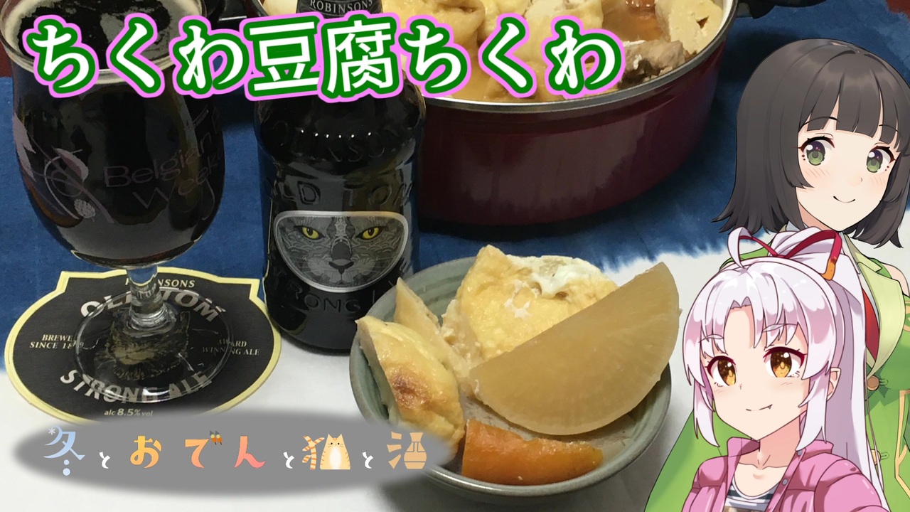 <span style="color: #ff0000; font-size: 24px;"><strong>祝!冬とおでんと猫と酒開催!!</strong></span><br>1日遅れてるけど、猫は伸びるものだからいいよね?<br>さて今回は冬とおでんと猫と酒というお題で、いつもの酒飲クラスタと<br>結託してことを進めました。<br>たまにはこういう企画もいよね!!<br><br>いいねコメントには、おでんにまつわる小ネタを書いておきました。<br><br><br>今回はかなりオマージュ色が強くなっています。<br>特に後半は何言ってんだこいつな流れですが、<br>そういう伏線があったくらいに覚えておいてください。<br>ビバップはいいぞ。<br><br>動画中触れていた、とうふちくわのフルートについてはこちらをご覧ください。<br><a href="http://www.toflute.com/" target="_blank" rel="noopener nofollow">http://www.toflute.com/</a><br><br><a href="https://www.nicovideo.jp/watch/sm41267570" class="watch">sm41267570</a> ⇐前| <a href="https://www.nicovideo.jp/mylist/72995657" target="_blank" rel="noopener">mylist/72995657</a> | 次⇒ 近日中<br><br>※本動画に使用している立ち絵について<br>うぃあの椅子 様(<a href="https://seiga.nicovideo.jp/seiga/im9749895" target="_blank" rel="noopener">im9749895</a>)の「ついなちゃん立ち絵 v1.4」について、利用規約の範囲内で「衣装・表情差分の一部を投稿者が加筆」「付属パーツを背景用に一部加工」したものになります。<br><br><a target="_blank" href="https://qa.nicovideo.jp/faq/show/19424?site_domain=default" style="font-size: 13px;color: #657586; text-decoration: underline; line-height: 1.4">この動画は投稿者によって修正されました</a>
