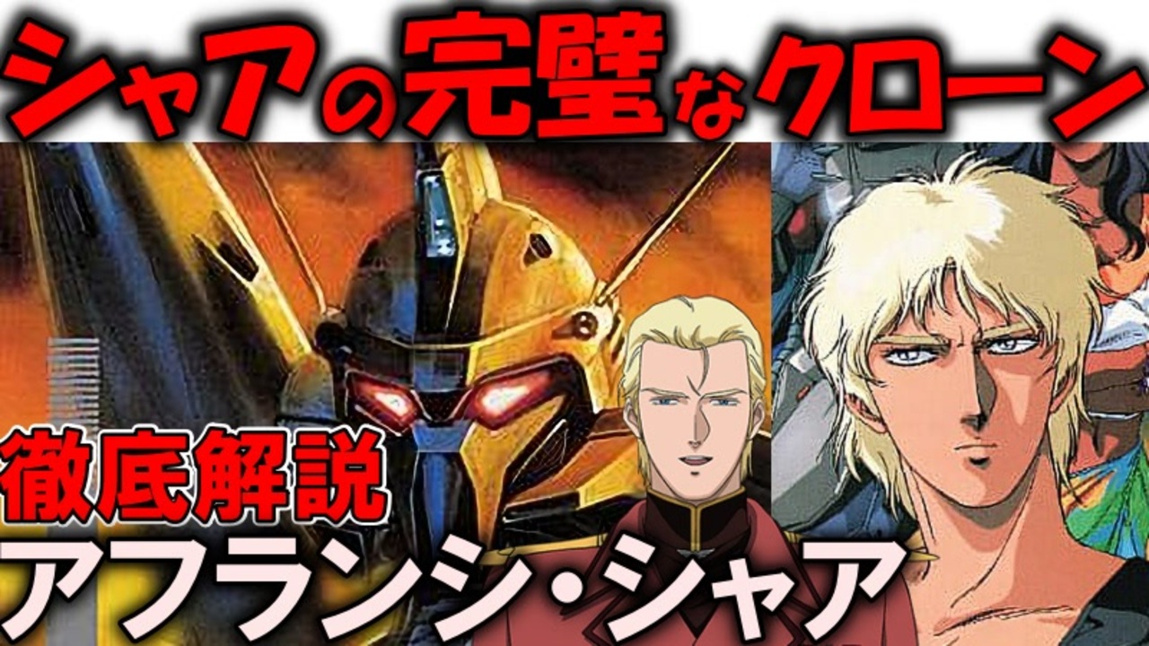 【ガイア・ギア】シャア・アズナブルの完璧なクローン、アフランシ・シャアの真実と結末【機動戦士ガンダム】<br><br>ゆっくりと公式になりつつあるかもしれないガイア・ギアの主人公、アフランシ・シャアの素性や活躍を解説しながら、シャアとの違いを解説、考察していきます。<br><br>今回は解説が多めです。<br><br>1巻から5巻全部合わせて1万5千円くらいでした。<br>個人的にはとても満足したけど人に勧められる値段じゃないですね・・・。<br><br>※誤ってMS解説に登録してたものをキャラクター解説に修正<br> ご指摘ありがとうございます、大変失礼しましたm(_ _)m<br><br>現在連載中の小説はこちら:<br>異世界アイドル革命!死に戻り悪役令嬢は閃いた『こいつら全員アイドルにしてしまおう!』<br><a href="https://kakuyomu.jp/works/16817330662598051943" target="_blank" rel="noopener nofollow">https://kakuyomu.jp/works/16817330662598051943</a><br><br>質問、などありましたらこちらにも<br><a href="https://twitter.com/@i4S0LHspdgzBTor" target="_blank" rel="noopener nofollow">https://twitter.com/@i4S0LHspdgzBTor</a><br><br>清見元康名義でカクヨム、小説家になろう、たいあっぷなどに投稿しています。<br>もし良ければ応援お願いしますm(_ _)m<br><a href="https://kakuyomu.jp/users/GariD/works" target="_blank" rel="noopener nofollow">https://kakuyomu.jp/users/GariD/works</a><br><br>以前の作品(短編シリアス):<br>転生した厄災の大魔女はやがて聖女と呼ばれる<br><a href="https://ncode.syosetu.com/n0827ha/" target="_blank" rel="noopener nofollow">https://ncode.syosetu.com/n0827ha/</a><br><br>A.I.VOICE:結月ゆかり<br>VOICEVOX:ずんだもん<br><br>使用させていただいたずんだもん:<br>ずんだもん mini Deluxe(立ち絵) ver1.2<br><a href="https://seiga.nicovideo.jp/seiga/im10794509" target="_blank" rel="noopener nofollow">https://seiga.nicovideo.jp/seiga/im10794509</a><br><br>いつも広告、コメントありがとうございます。<br>励みになりますm(_ _)m<br>
