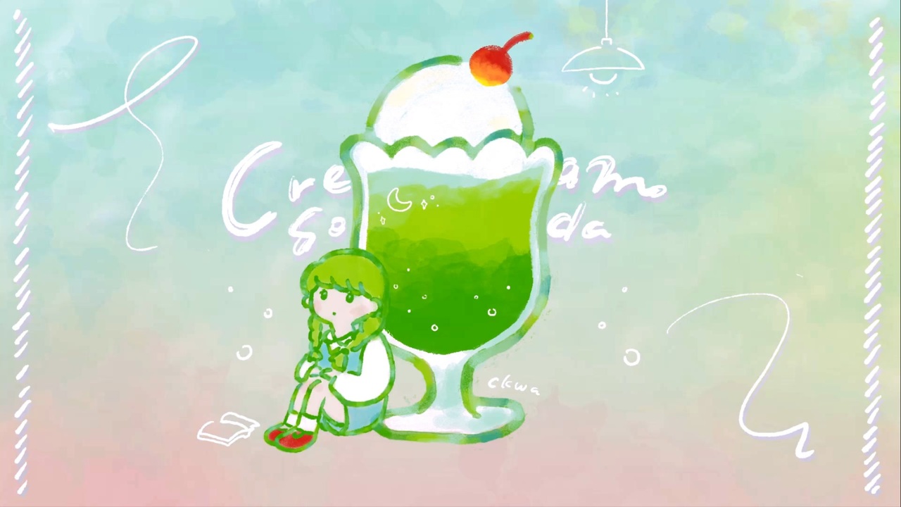 Cream Soda feat. 初音ミク<br>Music & Lyrics : ckwa<br>Illust : ckwa's Friend<br><br>ゆったりソングです!作業のお供にも☕<br><br>こちらのアルバムに収録されています<br><a href="https://www.youtube.com/watch?v=SCycG9JHIFo&t=0s" target="_blank" rel="noopener nofollow">https://www.youtube.com/watch?v=SCycG9JHIFo&t=0s</a><br><br>**インスト音源**<br><a href="https://www.dropbox.com/scl/fo/oqtgqoku0v65cyook43o8/h?rlkey=jadfxl2zey94ucdmun3loo7qy&dl=0" target="_blank" rel="noopener nofollow">https://www.dropbox.com/scl/fo/oqtgqoku0v65cyook43o8/h?rlkey=jadfxl2zey94ucdmun3loo7qy&dl=0</a><br><br><br>**Lyrics**<br>溺れちゃいそうな くらいの涙ずっとながしても<br>気持ち晴れないまま 思わず飛び出した<br>カラフルな記憶滲まないから<br>ソーダグラスに注いでしまおう<br>しゅわしゅわ弾ける 甘いだけのメモリー<br>最後の一口でいいから 味わいたい Ah<br><br>ゆらゆら揺られた 窓辺の夕日ちょっと眩しくて<br>消したフィルムは もう焼き付いてしまった<br>ほろ苦い香りはかき混ぜて<br>真っ白なシルクで蓋をしよう<br>しゅわしゅわ溶けてく 甘いだけのメロディ<br>最後の一口ずさんでも 飲み込めない<br>しゅわしゅわ弾ける 甘いだけのメモリー<br>最後の一口でいいから 味わいたい Ah<br><br><br><br><br><a target="_blank" href="https://qa.nicovideo.jp/faq/show/19424?site_domain=default" style="font-size: 13px;color: #657586; text-decoration: underline; line-height: 1.4">この動画は投稿者によって修正されました</a>