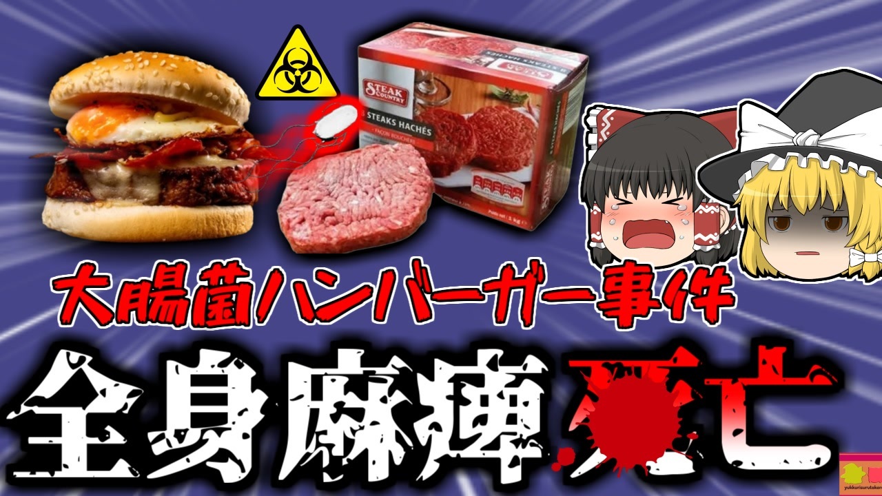 <strong>投稿後誤字などの一部を修正した物に上書きしました</strong><br><br><a href="#" class="seekTime" data-seekTime="00:00" onclick="seekNicoPlayer('#00:00'); return false;">#00:00</a> OP<br><a href="#" class="seekTime" data-seekTime="00:52" onclick="seekNicoPlayer('#00:52'); return false;">#00:52</a> 視聴上の注意<br><a href="#" class="seekTime" data-seekTime="1:18" onclick="seekNicoPlayer('#1:18'); return false;">#1:18</a> 本編開始<br><a href="#" class="seekTime" data-seekTime="2:05" onclick="seekNicoPlayer('#2:05'); return false;">#2:05</a> 冷凍パティでハンバーガー<br><a href="#" class="seekTime" data-seekTime="2:42" onclick="seekNicoPlayer('#2:42'); return false;">#2:42</a> 腹痛と下血<br><a href="#" class="seekTime" data-seekTime="3:18" onclick="seekNicoPlayer('#3:18'); return false;">#3:18</a> 腸管出血性大腸菌<br><a href="#" class="seekTime" data-seekTime="4:34" onclick="seekNicoPlayer('#4:34'); return false;">#4:34</a> 身体が麻痺<br><a href="#" class="seekTime" data-seekTime="5:11" onclick="seekNicoPlayer('#5:11'); return false;">#5:11</a> 製造会社の調査<br><a href="#" class="seekTime" data-seekTime="6:27" onclick="seekNicoPlayer('#6:27'); return false;">#6:27</a> 裁判<br><a href="#" class="seekTime" data-seekTime="7:12" onclick="seekNicoPlayer('#7:12'); return false;">#7:12</a> 享年10歳<br><a href="#" class="seekTime" data-seekTime="8:42" onclick="seekNicoPlayer('#8:42'); return false;">#8:42</a> 日本でもかつて社会現象に<br><a href="#" class="seekTime" data-seekTime="9:37" onclick="seekNicoPlayer('#9:37'); return false;">#9:37</a> 家庭での予防策<br><br>今回紹介するのは、以前リクエストがありました、食中毒事例の一つです。<br>西ヨーロッパに位置する、フランス共和国沿岸部の街に暮らす女性「Aさん」はこの日、今年2歳になる男の子「Bちゃん」とを連れ、地元のスーパーマーケットを訪れていました。Aさんはこのスーパーで購入した冷凍のハンバーガー用パティーを使いBちゃんにハンバーガーを作って食べさせましたが、数日後Bちゃんの激しい腹痛や下血の症状があり、病院を受診すると、「腸管出血性大腸菌」に感染していることが判明。彼はすぐに入院し治療を受けましたが、溶血性尿毒症症候群発症し、身体の約八割が麻痺してしまうという、重篤な症状が出てしまいました。<br>保健所の調査によれば、同地域でほぼ同時期に、Bちゃんのような患者が少なくとも15名は確認されており、彼らに共通していたのは、あのスーパーで販売されていた、冷凍パティーを喫食していたということでした。<br>製造会社を調べた結果、杜撰な衛生管理によって、食品が汚染されていたことが分かり、責任者の男性には、適切な品質管理を怠ったとして、懲役三年の有罪判決が下り、その後一切の商工業活動への参加が禁じられ、約5万ユーロ(約600万円)の支払いが求められましたが、一貫してその事実を否定。<br>Bちゃんはその後、家族のサポートを受けながら生活していましたが、2011年6月、自宅で心停止となり、この世を去りました。<br><br />※この動画は過去の事件を知り、現在でも同じことが発生する危険性を再認識、関与しないように促すための動画であり、視聴者を扇動、動揺を誘うためのコンテンツではありません。<br><br>ご要望にお応えして、メンバーシップの開設を行いました。<br>下記URLからも登録可能ですので、ご興味がある方は是非ご参加ください。<br><a href="https://www.youtube.com/channel/UCcT5a1J7XJW7CLYI2RKl4pw/join" target="_blank" rel="noopener nofollow">https://www.youtube.com/channel/UCcT5a1J7XJW7CLYI2RKl4pw/join</a><br><br><br>Twitter<br>→<a href="https://twitter.com/yukkurisurutoko" target="_blank" rel="noopener nofollow">https://twitter.com/yukkurisurutoko</a><br><br>取り急ぎ、簡易的にですがマイリストを作りました。<br>【ゆっくり解説】事故・事件関係紹介リスト <br><a href="https://www.nicovideo.jp/mylist/71034319" target="_blank" rel="noopener nofollow">https://www.nicovideo.jp/mylist/71034319</a><br>【ゆっくり解説】放射線系事故<br><a href="https://www.nicovideo.jp/mylist/71034368" target="_blank" rel="noopener nofollow">https://www.nicovideo.jp/mylist/71034368</a><br>【ゆっくり解説】鉄道系事故・事件関連<br><a href="https://www.nicovideo.jp/mylist/71034379" target="_blank" rel="noopener nofollow">https://www.nicovideo.jp/mylist/71034379</a><br><br><a target="_blank" href="https://qa.nicovideo.jp/faq/show/19424?site_domain=default" style="font-size: 13px;color: #657586; text-decoration: underline; line-height: 1.4">この動画は投稿者によって修正されました</a>