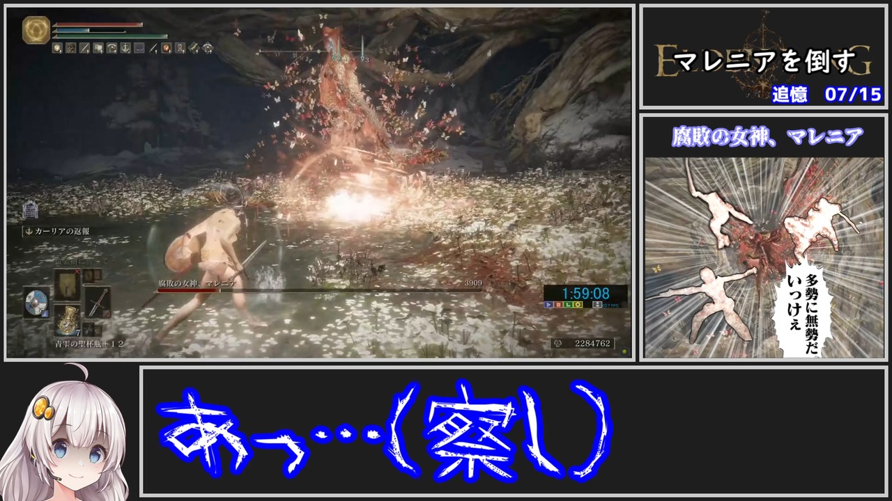 RTA第二弾です。<br><br>王都ローデイル~火の頂まで<br><br><br>・エルデンリングのネタバレを含みます。<br>・SL1でカンスト難易度(8周目以降)の全追憶ボス撃破でのクリアを目指します。<br>・biim兄貴リスペクト動画です。<br>・VOICEROID、A.I.VOICEなどを使用しています。<br>・ver1.10でのプレイ動画です。<br>・バグなし…のつもりです多分。<br>・プレイはガバガバです。<br><br><strong>前(1/3)→<a href="https://www.nicovideo.jp/watch/sm43371207" class="watch">sm43371207</a><br>次(3/3)</strong>→<strong><a href="https://www.nicovideo.jp/watch/sm43505142" class="watch">sm43505142</a></strong><br><br><strong>解説なし版→</strong><a href="https://www.nicovideo.jp/watch/sm43371286" class="watch">sm43371286</a><br><br><strong>前回のレベル1カンストRTA</strong>→<a href="https://www.nicovideo.jp/watch/sm42178086" class="watch">sm42178086</a><br><strong>前々回のレベル1攻略解説→</strong><a href="https://www.nicovideo.jp/watch/sm41849179" class="watch">sm41849179</a><br><strong>前々々回のシリーズのレベル1で王になりたいあかりちゃん</strong>→<a href="https://www.nicovideo.jp/series/328309" target="_blank" rel="noopener">series/328309</a><br><span style="color: #262626;"><strong>前々々々回のシリーズの知力しか上げられないゆかりさん</strong></span><span style="color: #262626;">→</span><a href="https://www.nicovideo.jp/series/312150" target="_blank" rel="noopener">series/312150</a><br><br>